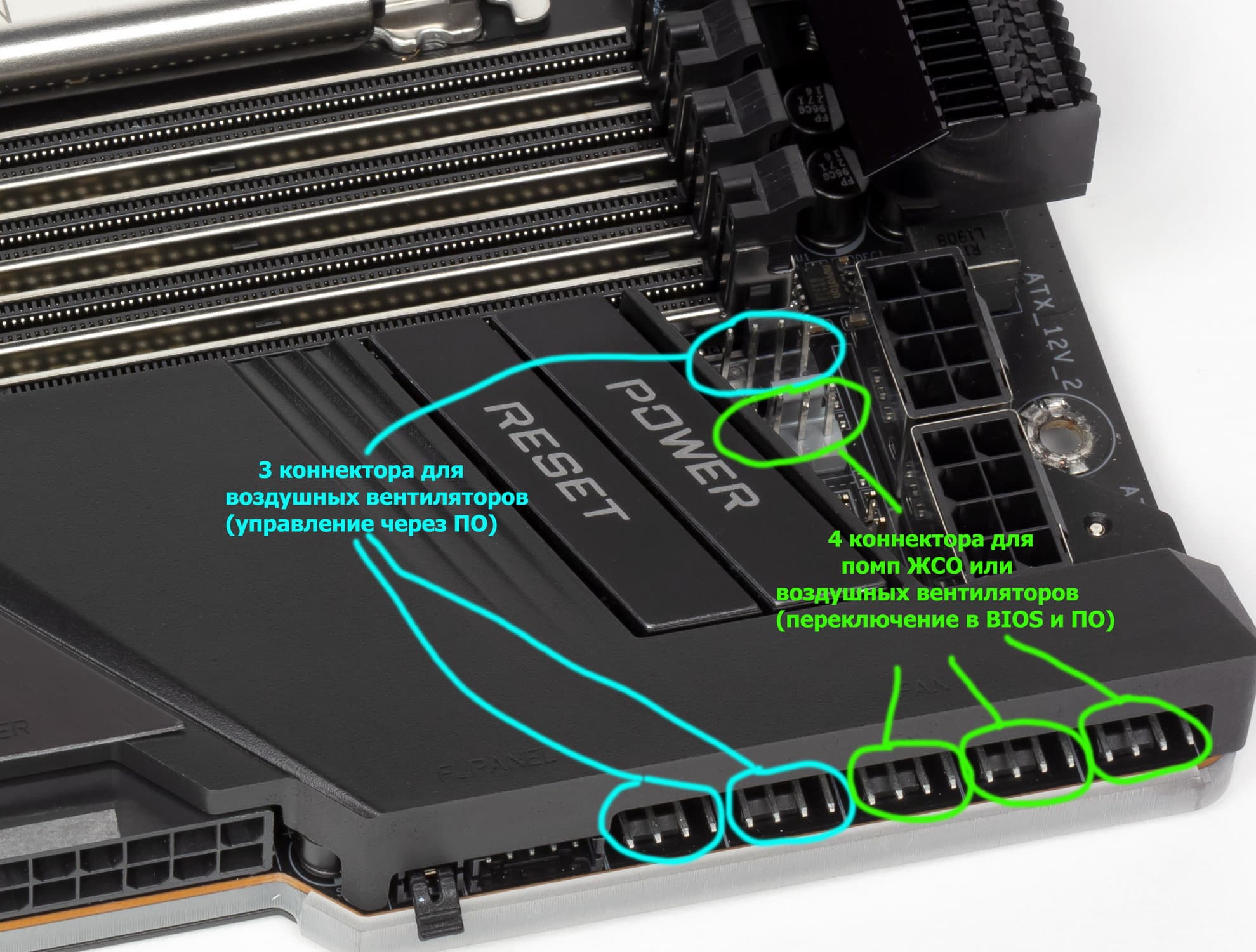 Теперь про блок ввода-вывода, разъемы для подключения вентиляторов и т. п. Разъемов для подключения вентиляторов много: 7 штук!