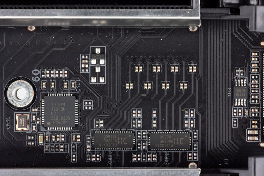 Зато есть внешний генератор частот для поддержки разгона шины PCI-E 4.0 — IDT6V4.