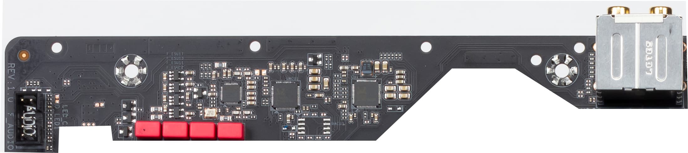 Информации по этому кодеку очень мало, имеется лишь утверждение, что чипсет AMD TRX40 изначально поставляется производителям матплат с этими двумя аудиокодеками (что означает, что мы их увидим и на других материнских платах под новые «тредрипперы»). Также очевидно, что Realtek ALC4050H играет роль своего рода «хаба» для разделения аудиотрактов. Да, инженеры придумали разнести выводы звука на миниджеки на задней панели (для акустических систем) и выводы звука на наушники (через разъем Front Audio для подключения миниджеков с передней панели корпуса ПК). Во втором случае к ALC4050H подключается ЦАП, а ALC1220 работает без оного.