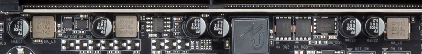 Что касается модулей оперативной памяти: каждый из двух блоков DIMM имеет по трехфазной системе питания с контроллером RT8120D.