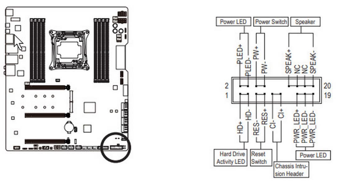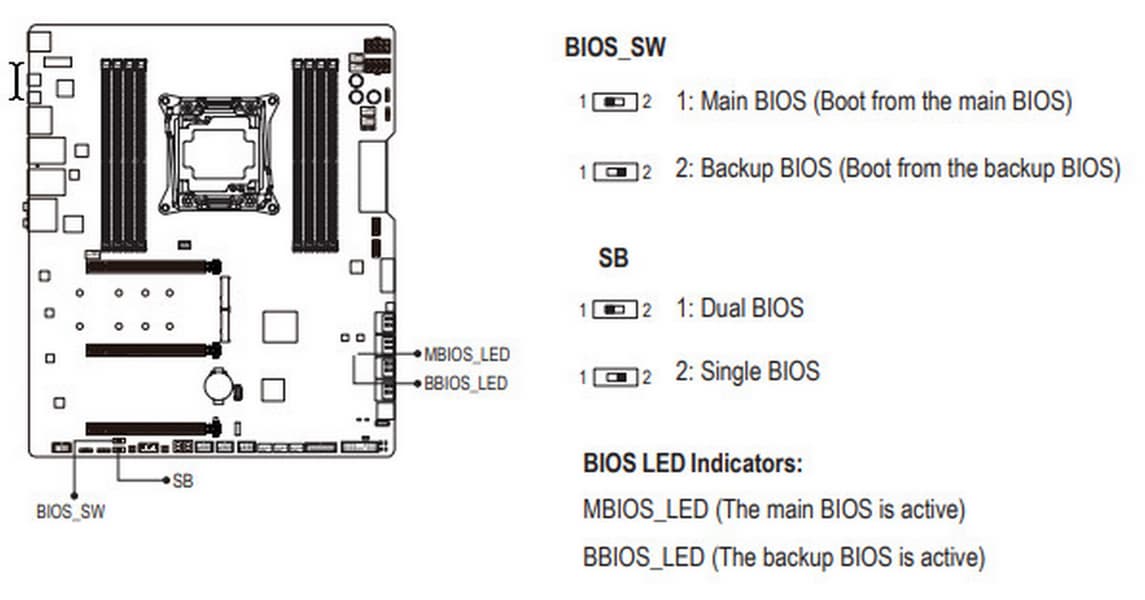 - Переключатель: если CPU с 48 или 44 линиями PCI-E, то слот PCI-Ex16_2 получает 16 линий; в противном случае (CPU с 28 линиями PCI-E) — 8 линий;