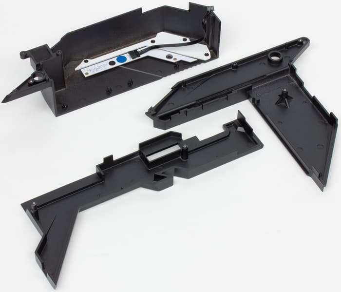 Над блоком разъемов задней панели и над аудиотрактом установлены пластиковые кожухи соответствующего дизайна и с подсветкой, радиаторов там нет.