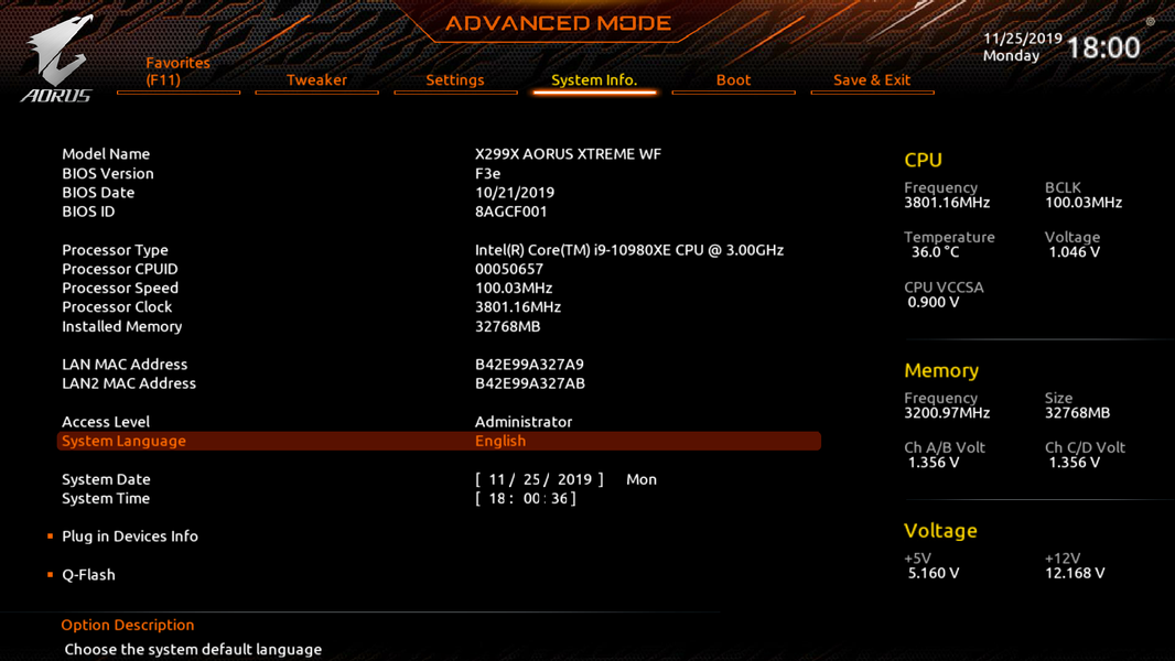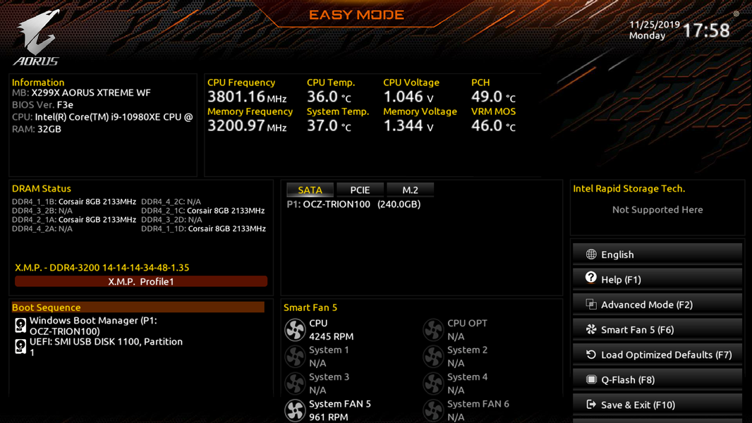 Еще раз надо напомнить, что Gigabyte X299X Aorus Xtreme Waterforce поддерживает процессоры Intel