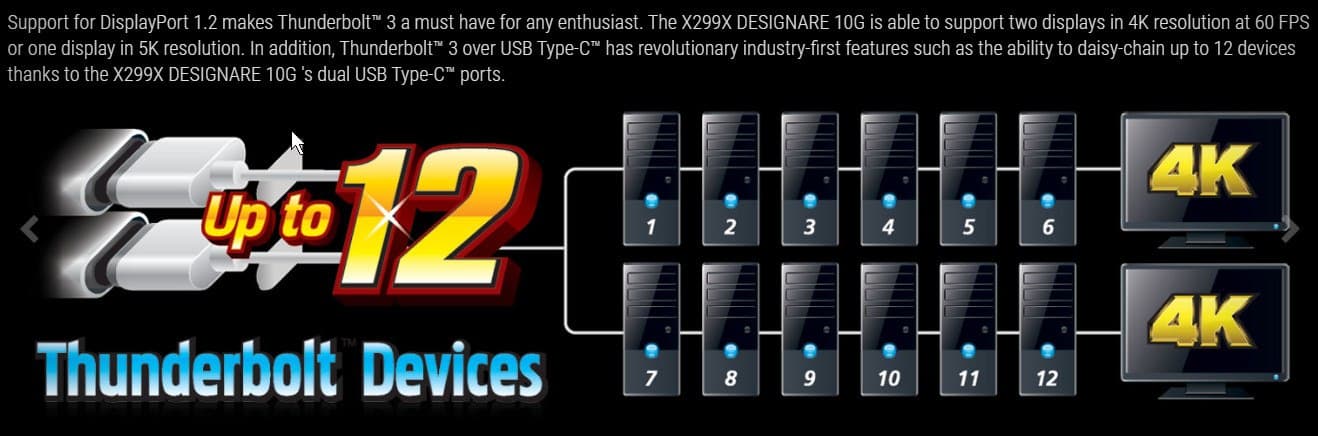 | USB-порты | 6 × USB 3.2 Gen1: 2 порта Type-A (белый и синий) на задней панели + 2 внутренних разъема на 4 порта (X299) 2 × USB 2.0: 2 порта Type-A (черные) на задней панели (X299) 2 × USB 3.2 Gen2: 2 внутренних разъема, каждый на 1 порт Type-C (ASMedia) 2 × USB 3.2 Gen2: 2 порта Type-A (красные) на задней панели (ASMedia) 6 × USB 2.0: 3 внутренних разъема, каждый на 2 порта (Genesys) 2 × USB 3.2 Gen2: 2 порта Type-C на задней панели (Thunderbolt) |