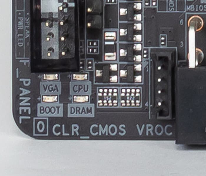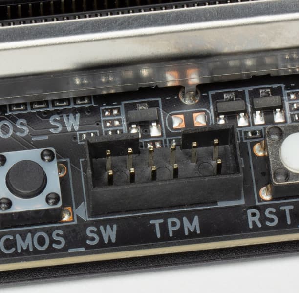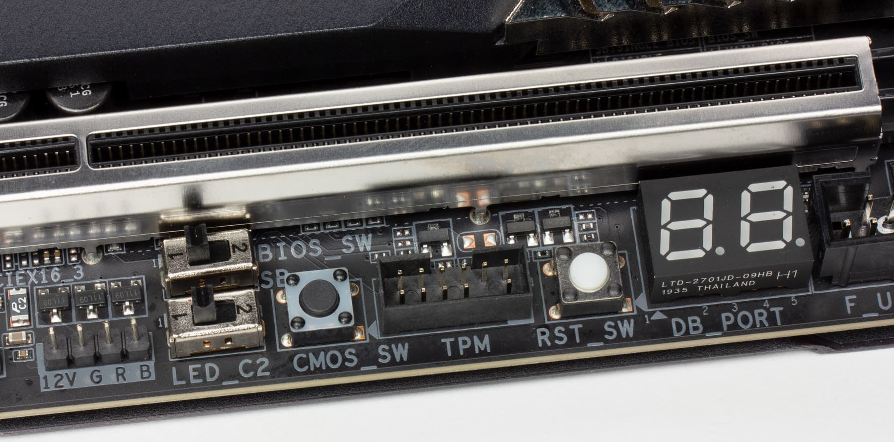 | Прочие внутренние элементы | 24-контактный разъем питания ATX 2 8-контактных разъема питания ATX12V 1 6-контактный разъем питания PCI-E 1 слот M.2 (E-key), занят адаптером беспроводных сетей 2 разъема для подключения порта USB 3.2 Gen2 Type-C 2 разъема для подключения 4 портов USB 3.2 Gen1 3 разъем для подключения 6 портов USB 2.0 8 разъемов для подключения 4-контактных вентиляторов (поддержка помп ЖСО) 2 разъема для подключения неадресуемой RGB-ленты 2 разъема для подключения адресуемой ARGB-ленты 1 разъем для детектора шума 1 разъем аудио для передней панели корпуса 1 разъем TPM 1 разъем для подключения управления с передней панели корпуса 1 кнопка включения питания (Power) 1 кнопка перезагрузки (Reset) 1 кнопка сброса CMOS 2 разъема для подключения термодатчиков 2 переключателя режимов BIOS 1 перемычка сброса CMOS |