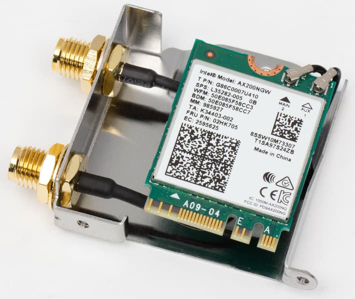 | Сетевые контроллеры | 1 × Intel WGI219 (Ethernet 1 Гбит/с) 1 × Aquantia AQtion AQC107 (Ethernet 10 Гбит/с) 1 × Intel Dual Band Wireless AX200NGW/CNVi (Wi-Fi 802.11a/b/g/n/ac/ax (2,4/5 ГГц) + Bluetooth 5.0) |