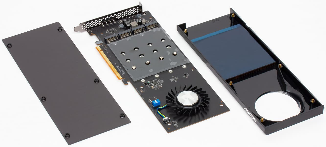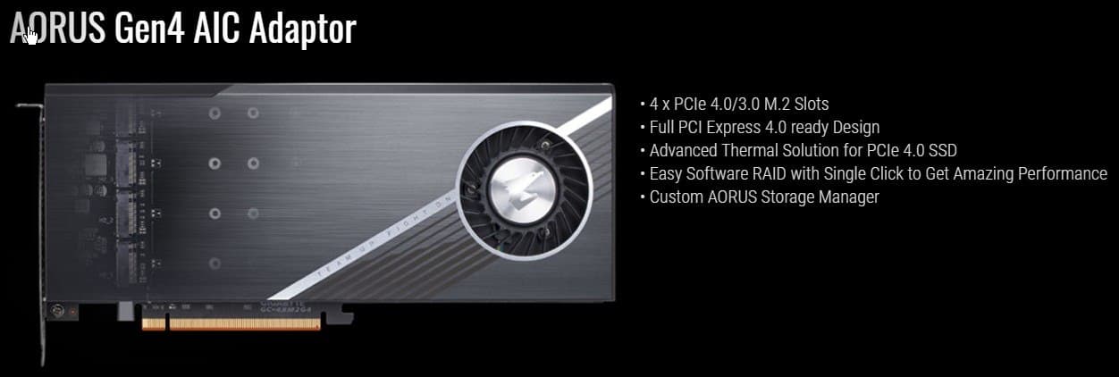 Но это не все. Я рассказал лишь о двух слотах M.2 на самой материнке, но в комплект поставки входит специальная карта Aorus Gen4 AIC.