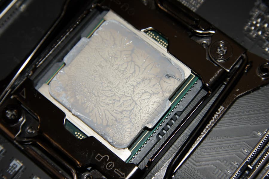 Штатная паста очень хорошо охватывает поверхность крышки процессора, отпечаток получился отличный.