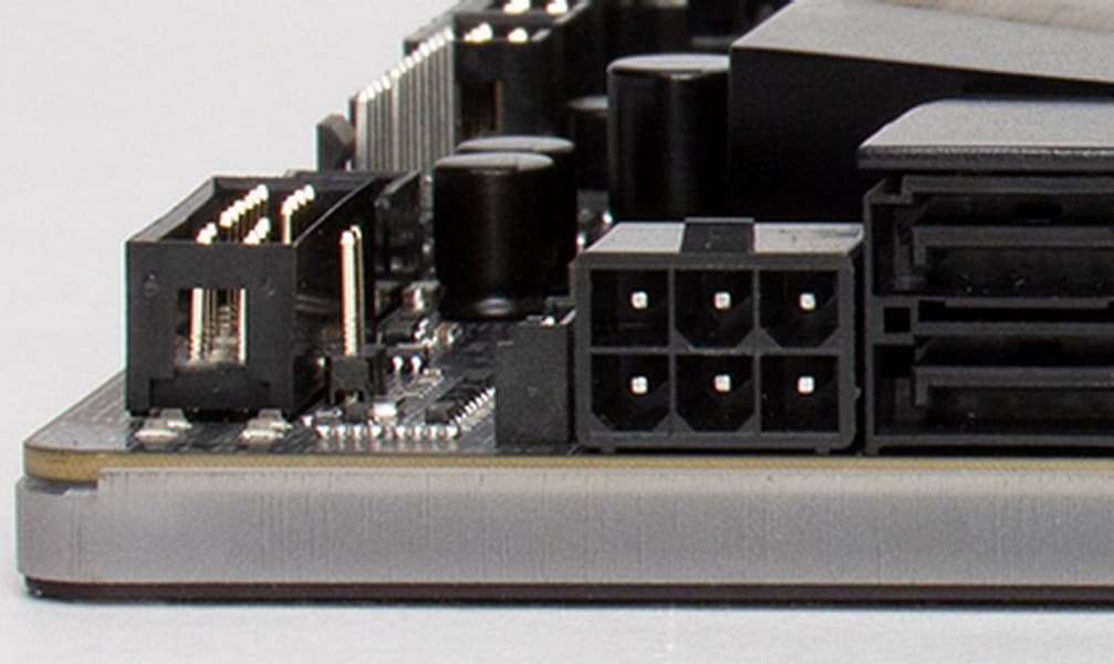 Также имеется 6-контактный разъем дополнительного питания PCI-E на случай установки двух или трех видеокарт. Его использование опционально.