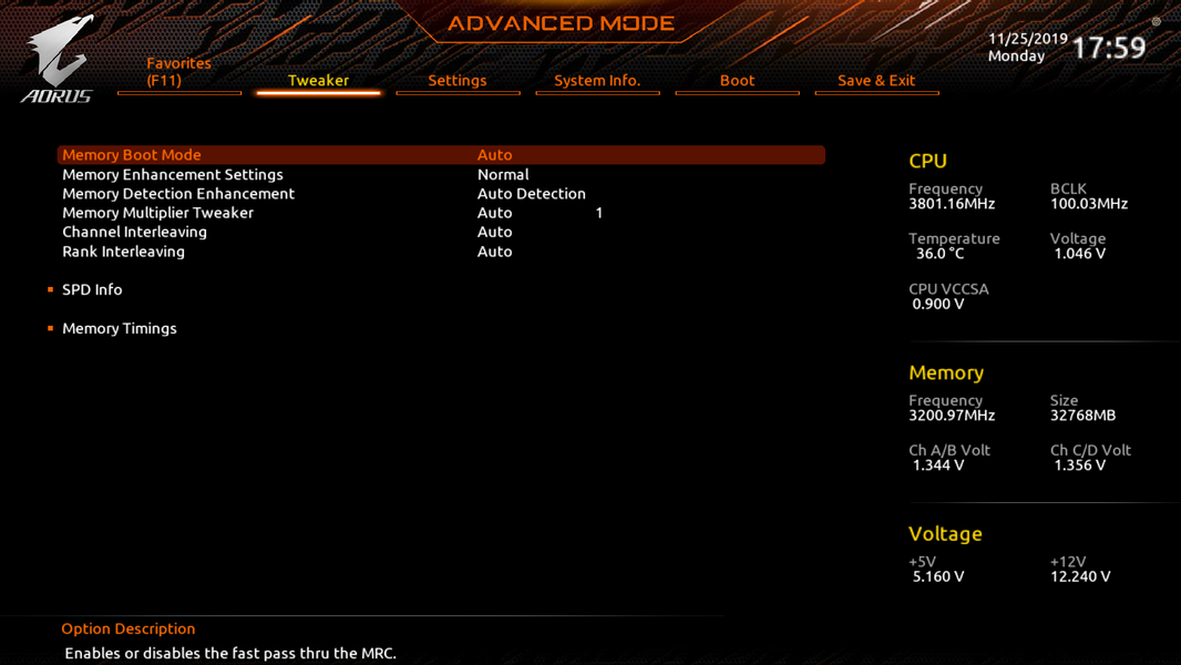 По умолчанию мы попадаем в «простое» меню, которое по сути информационное. Нажимаем F2 и попадаем уже в «продвинутое» меню для возможностей настроек. Раздел Tweaker полностью посвящен разгону и тонкой настройке работы CPU и памяти.
