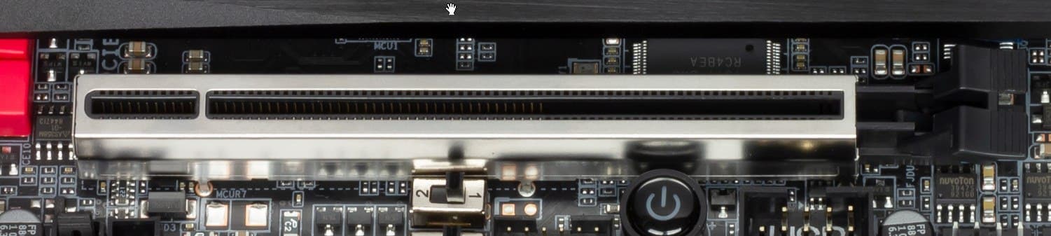 Если мы имеем самый последний Core i9-10xxxX, то данный слот всегда получает 8-линий PCI-E при условии того, что слот средний слот M.2 (М2М) не занят накопителем. Если же в этом слоте есть накопитель (а М2М работает только с PCI-E модулями), то второй слот PCI-Ex16 переключается с х8 на х4.