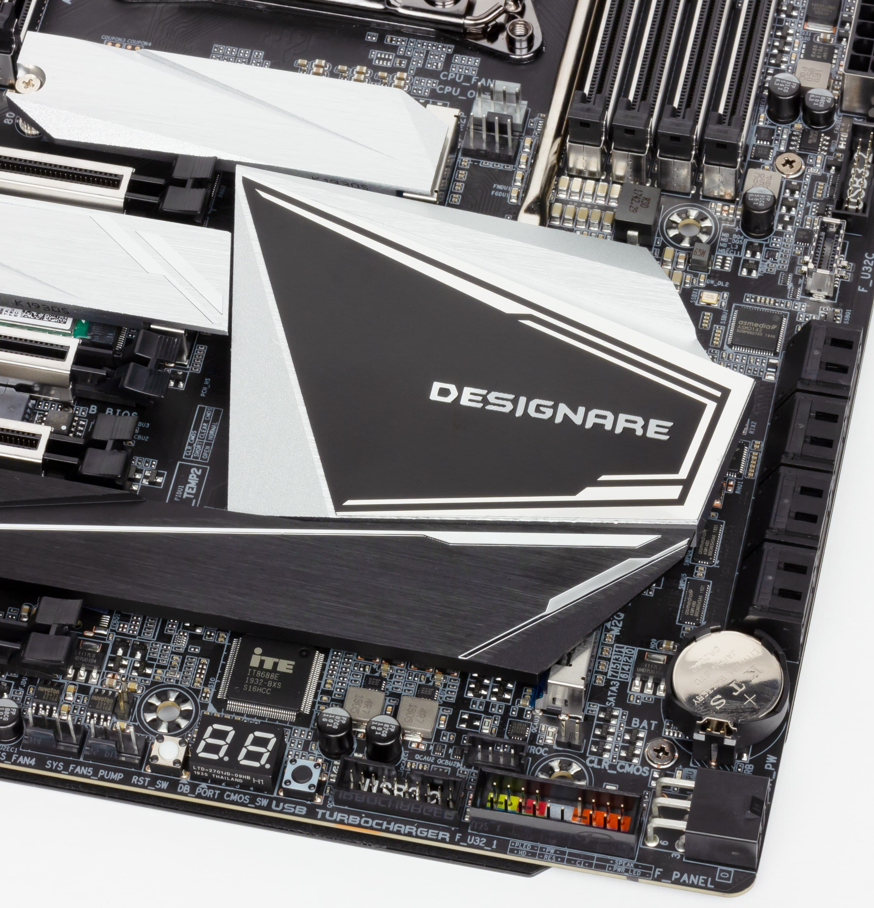 Если как-то суммировать, то Designare у Gigabyte подразумевает, что лишнего такого этакого на плате не будет, однако все продвинутые «фишки», есть. Подсветка есть? Да, но урезана. Настройки оверклокинга? — Да, но сильно ограничены. Но при этом есть одна или две «изюминки», которые присущи именно данной серии. И ориентирована серия на творческих личностей, которым нужен мощный ПК не только для игр, а для создания чего-то, в частности трехмерных сцен, моделей, объектов, иного контента. Однако при этом если нужно поиграть — то пожалуйста, материнская плата предоставит весь потенциал для превращения данного ПК в современный геймерский центр. Designare — это выбор тех, кому нужен ПК для полу- или полностью профессионального использования, но при этом ограничены возможности для приобретения или использования рабочих станций.