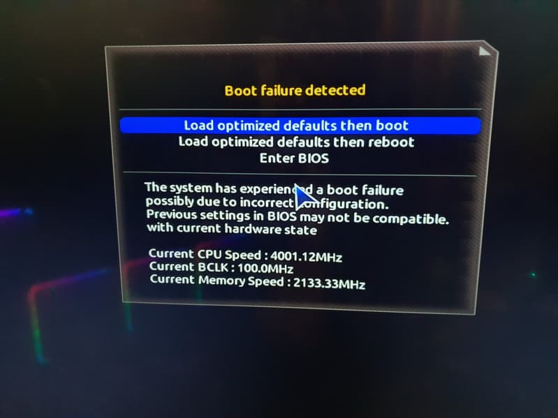 Все же я не устоял и решил попробовать тот самый режим разгона через фирменную программу Gigabyte Easy Tune. Утилита попросила перезагрузиться, система минут пять пыталась загрузиться, запуская ПК и выключая его снова. В конце концов на экране монитора появилось вот это: