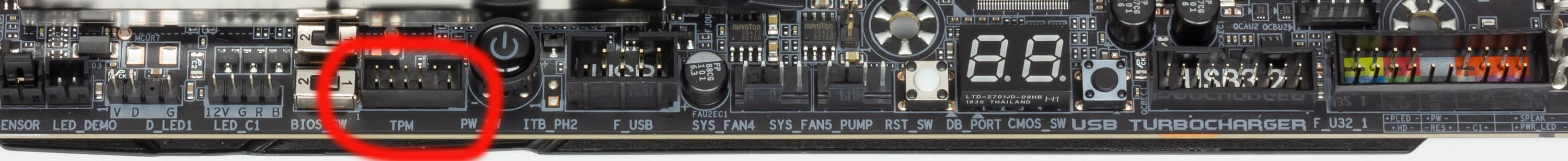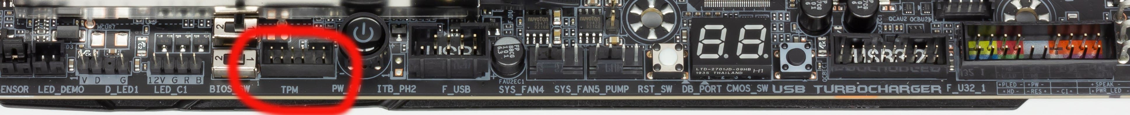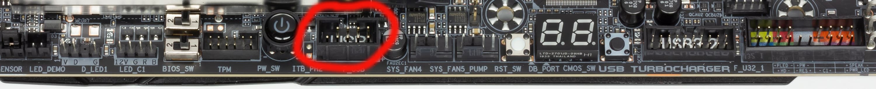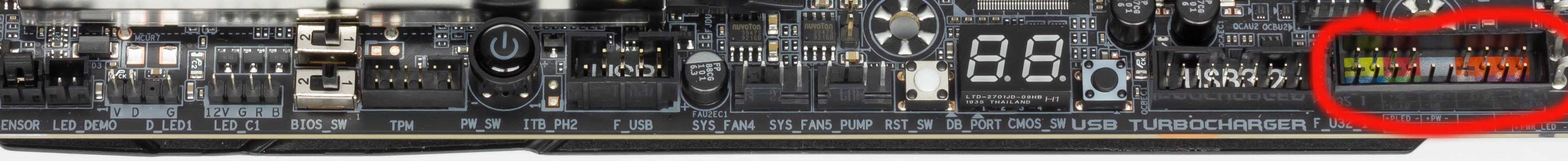 | Прочие внутренние элементы | 24-контактный разъем питания ATX 2 8-контактных разъема питания ATX12V 1 6-контактный разъем питания PCI-E 1 слот M.2 (E-key), занят адаптером беспроводных сетей 1 разъем для подключения порта USB 3.2 Gen2 Type-C 2 разъема для подключения 4 портов USB 3.2 Gen1 1 разъем для подключения 2 портов USB 2.0 8 разъемов для подключения 4-контактных вентиляторов (поддержка помп ЖСО) 2 разъема для подключения неадресуемой RGB-ленты 2 разъема для подключения адресуемой ARGB-ленты 1 разъем для детектора шума 1 разъем аудио для передней панели корпуса 1 разъем TPM 1 разъем для подключения управления с передней панели корпуса 1 кнопка включения питания (Power) 1 кнопка перезагрузки (Reset) 1 кнопка сброса CMOS 2 разъема для подключения термодатчиков 2 переключателя режимов BIOS 1 перемычка сброса CMOS |