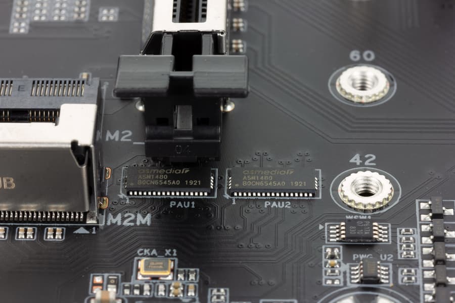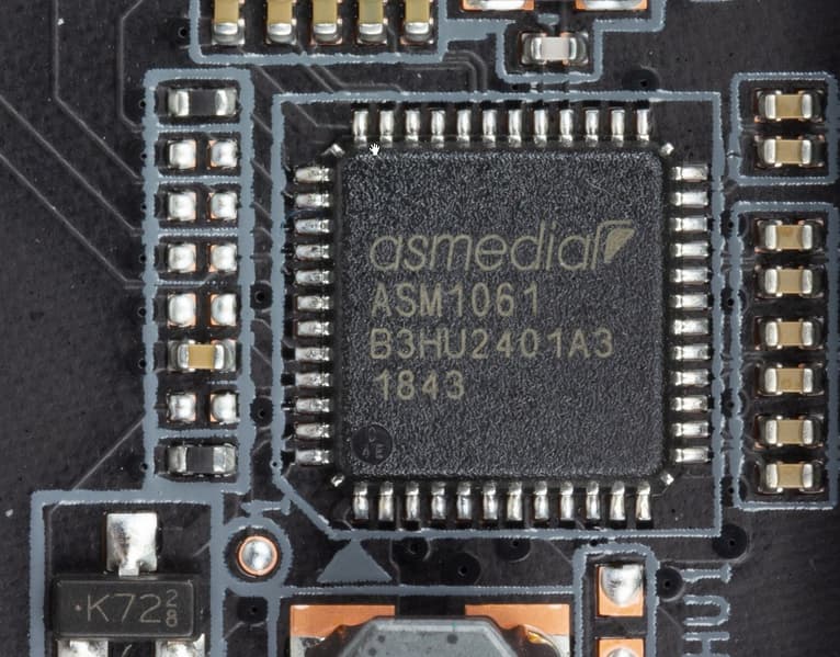 Остальные 2 порта SATA реализованы через дополнительный контроллер ASM1061 от ASMedia (на них организовать RAID нельзя!).