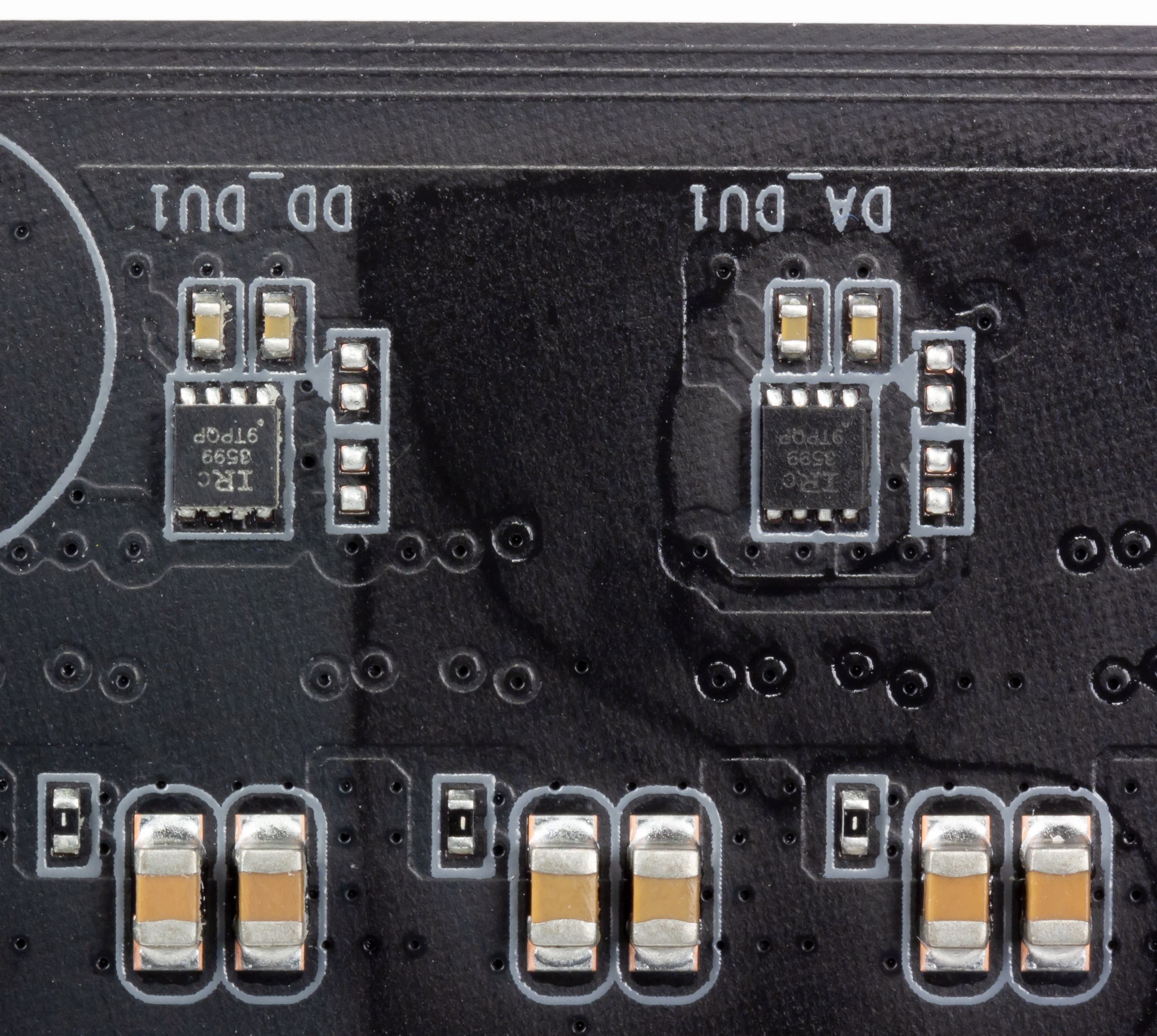 Сопутствующих ЦАП и(или) операционных усилителей нет (хотя посадочные места под них имеются). В аудиоцепях платы применяются «аудиофильские» конденсаторы Nichicon Fine Gold и Wima.