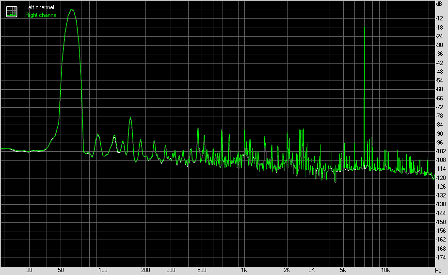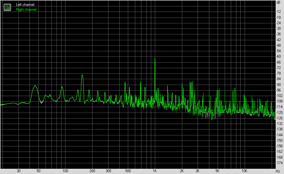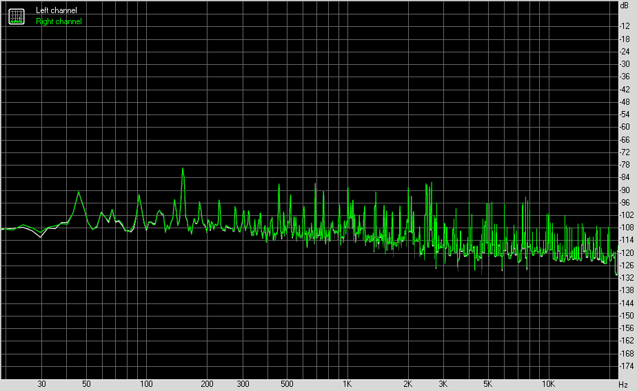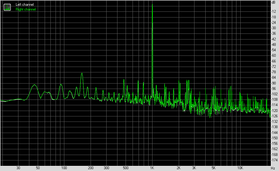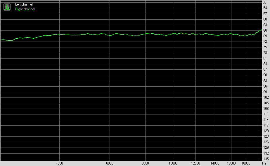 Для тестирования выходного звукового тракта, предназначенного для подключения наушников или внешней акустики, мы использовали внешнюю звуковую карту Creative E-MU 0202 USB в сочетании с утилитой RightMark Audio Analyzer 6.4.5. Тестирование проводилось для режима стерео, 24-бит/44,1 кГц. По результатам тестирования аудиотракт на плате получил оценку «Хорошо» (оценка «Отлично» практически не встречается на интегрированном звуке, все же это удел уже полноценных звуковых карт).