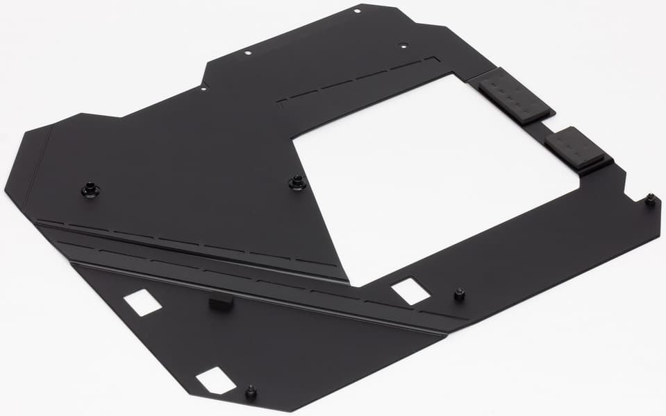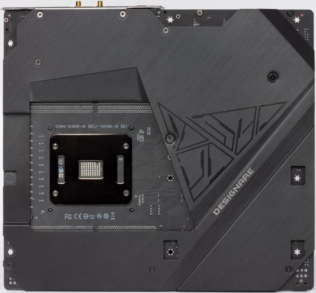 И вот тут есть один нюанс. Когда-то еще в обзоре по Gigabyte Z390 Aorus Xtreme я писал, что подобная пластина может мешать монтажу платы в некоторые корпуса (некоторые крепежные отверстия находятся очень близко от края защитной пластины, и это не дает плате ровно «лечь» в том случае, если в корпусе используются выпресcованные возвышения, а не всем хорошо известные латунные вставки для установки на них материнских плат). В данном случае этот недостаток устранен.