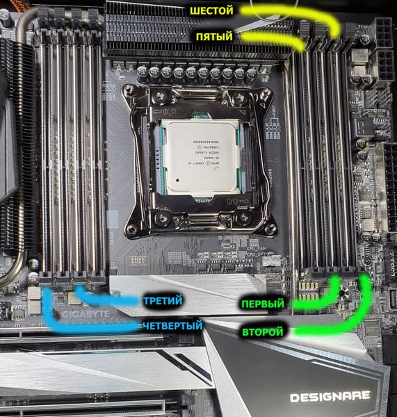 Еще раз надо напомнить, что Gigabyte X299X Designare 10G поддерживает процессоры Intel Core X 7го, 9-го и 10го поколений (SkyLake-X, CascadeLake-X) .