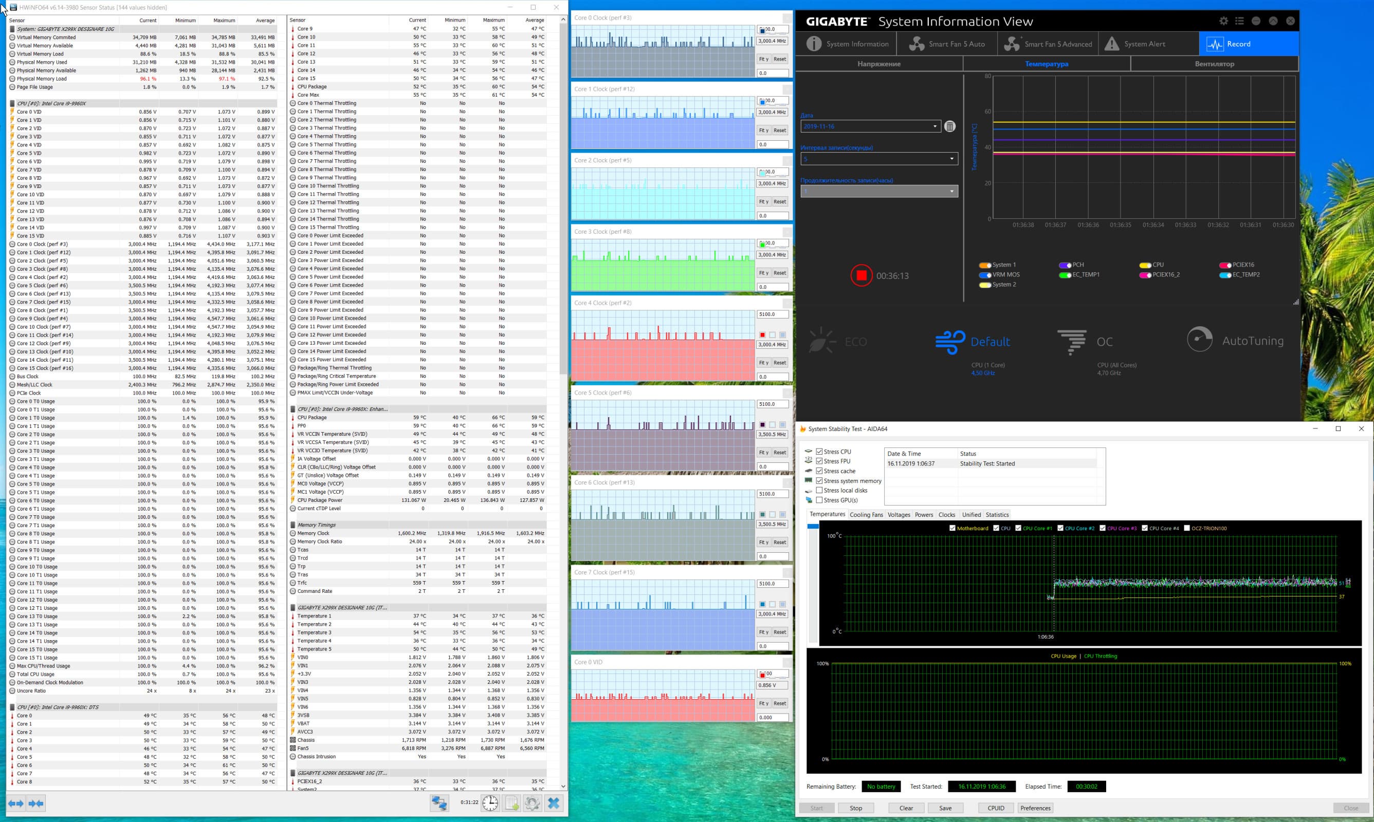 Запускаем все в режиме по умолчанию. Затем нагружаем жестким тестом от AIDA.