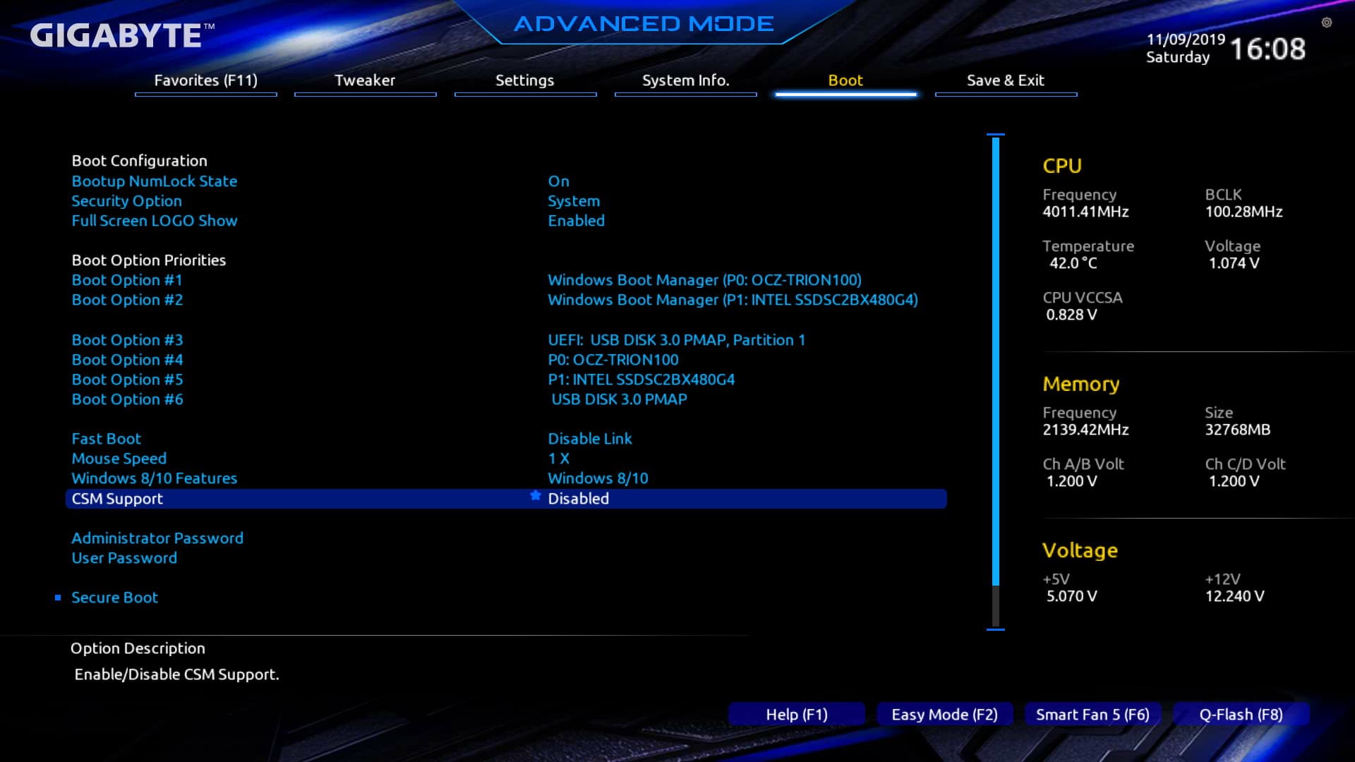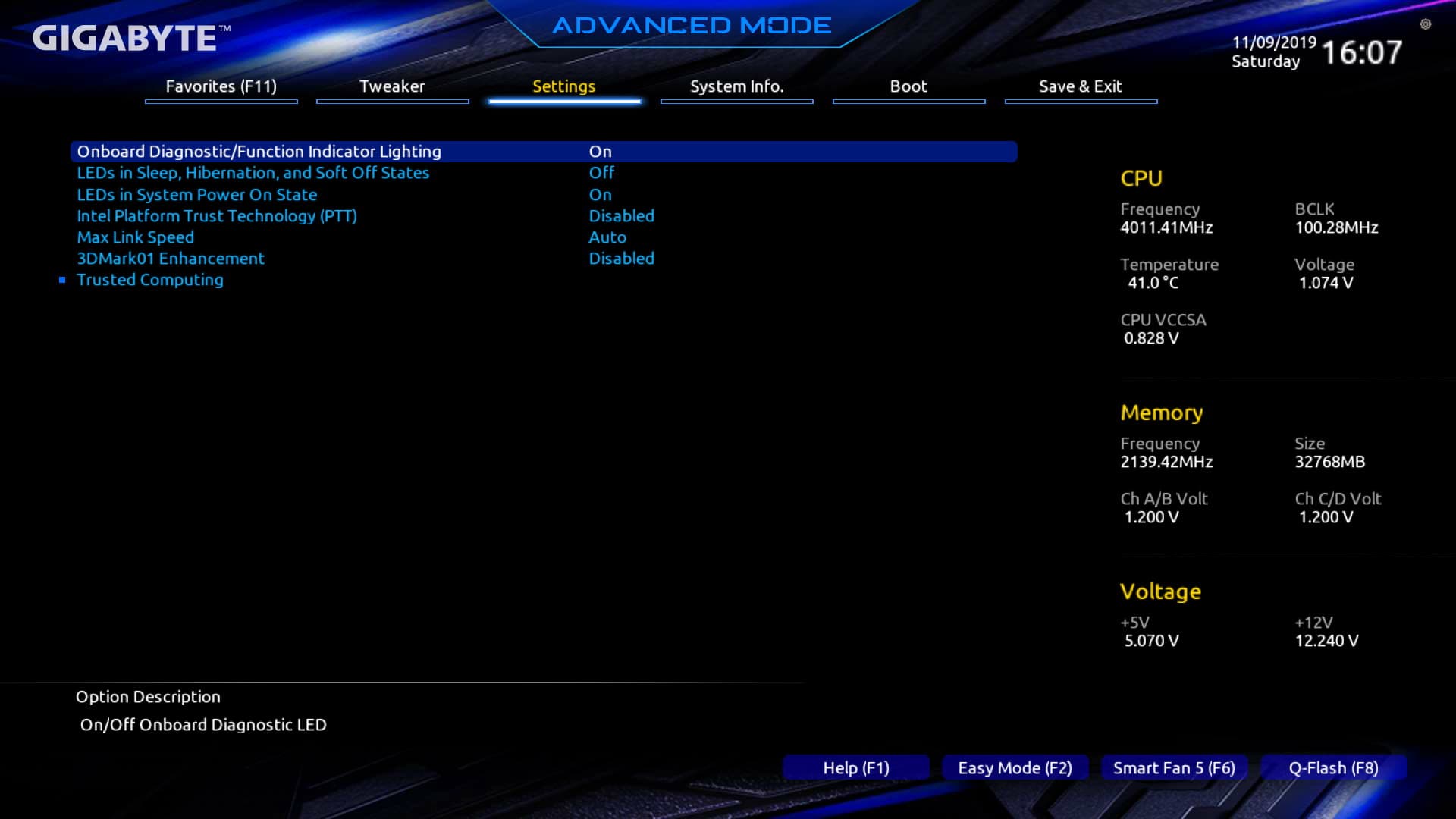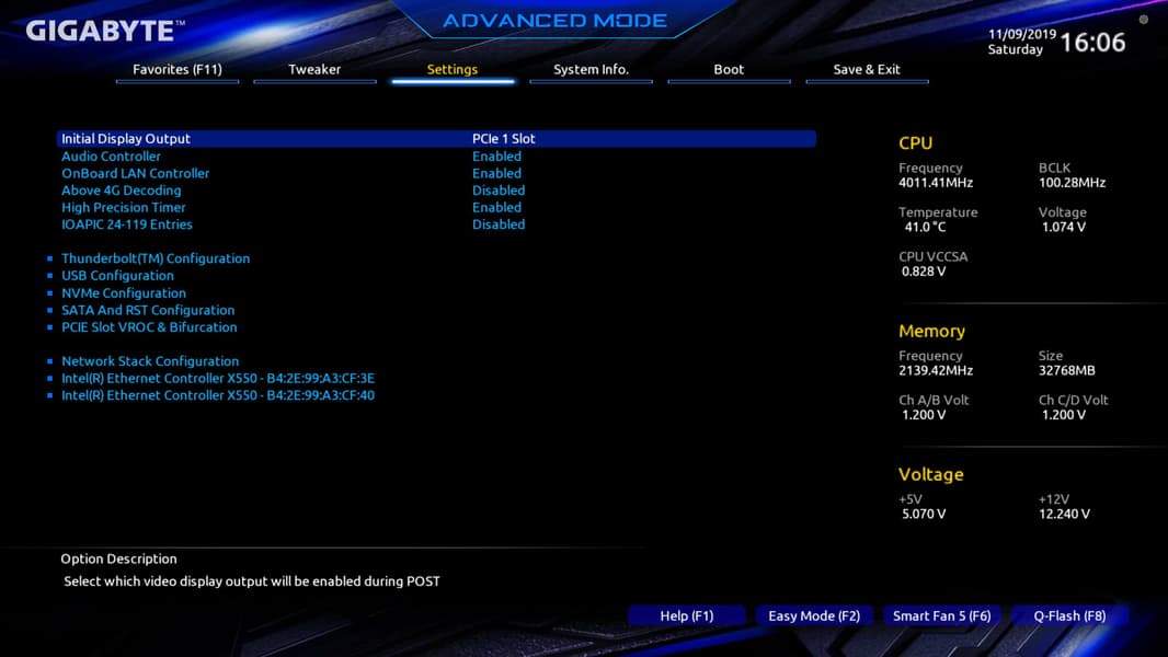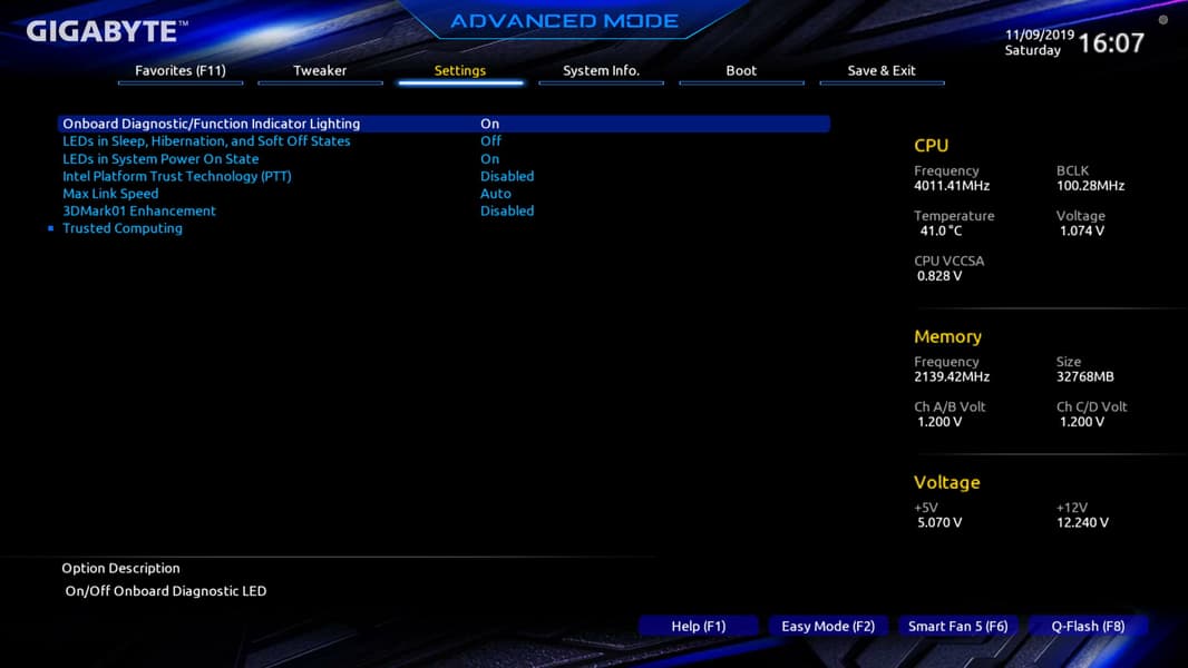 В отличие от иных плат, например, семейства Aorus, в данном случае настроек не так много.