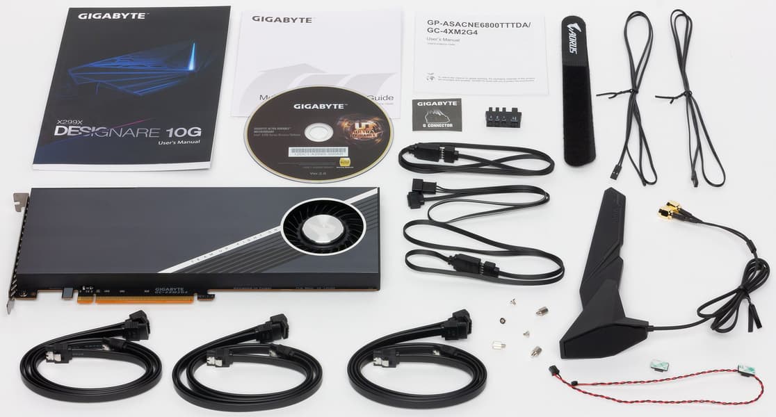 Gigabyte X299X Designare 10G относится к классу премиальных продуктов. Эту материнскую плату за 50 с лишним тысяч рублей смогут позволить себе немногие. С другой стороны, она обладает всеми признаками принадлежности к классу Hi-End, начиная с упаковки и комплекта поставки. При этом позиционирование у Designare специфическое: серьезных возможностей для разгона тут нет, зато есть порты Thunderbolt (массе обычных геймеров эта технология пока совершенно не нужна) и два порта 10-гигабитной сети, отсутствует огромное количество USB-портов на задней панели, но при этом богатый ассортимент высокоскоростных слотов как для периферийных устройств, так и для накопителей, поддержка Intel VROC и т. п. Завершают картину строгий дизайн печатной платы и минимум подсветки.