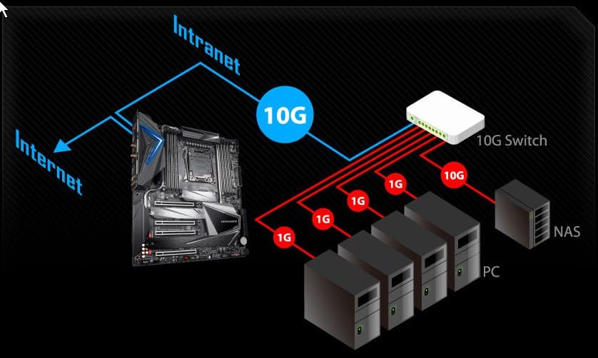 | Сетевые контроллеры | 1 × Intel X550-AT2 Dual Ethernet 10 Гбит/с 1 × Intel Dual Band Wireless AX200NGW/CNVi (Wi-Fi 802.11a/b/g/n/ac/ax (2,4/5 ГГц) + Bluetooth 5.0) |