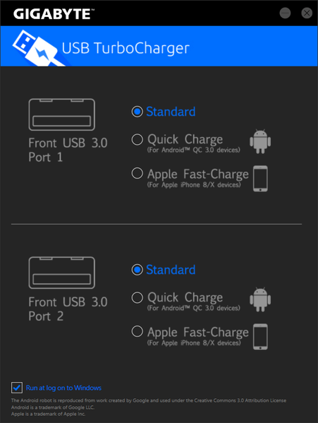 Если режим «быстрой» зарядки по умолчанию имеется у порта USB 3.2 Gen2, который выводится на корпус в форм-факторе Type-C, то через данную программу «зарядить» более быстрым питанием для подключения мобильных устройств можно пару разъемов уже USB 2.0 (которые также подключаются через внутренний разъем к корпусным двух гнездам Type-A).
