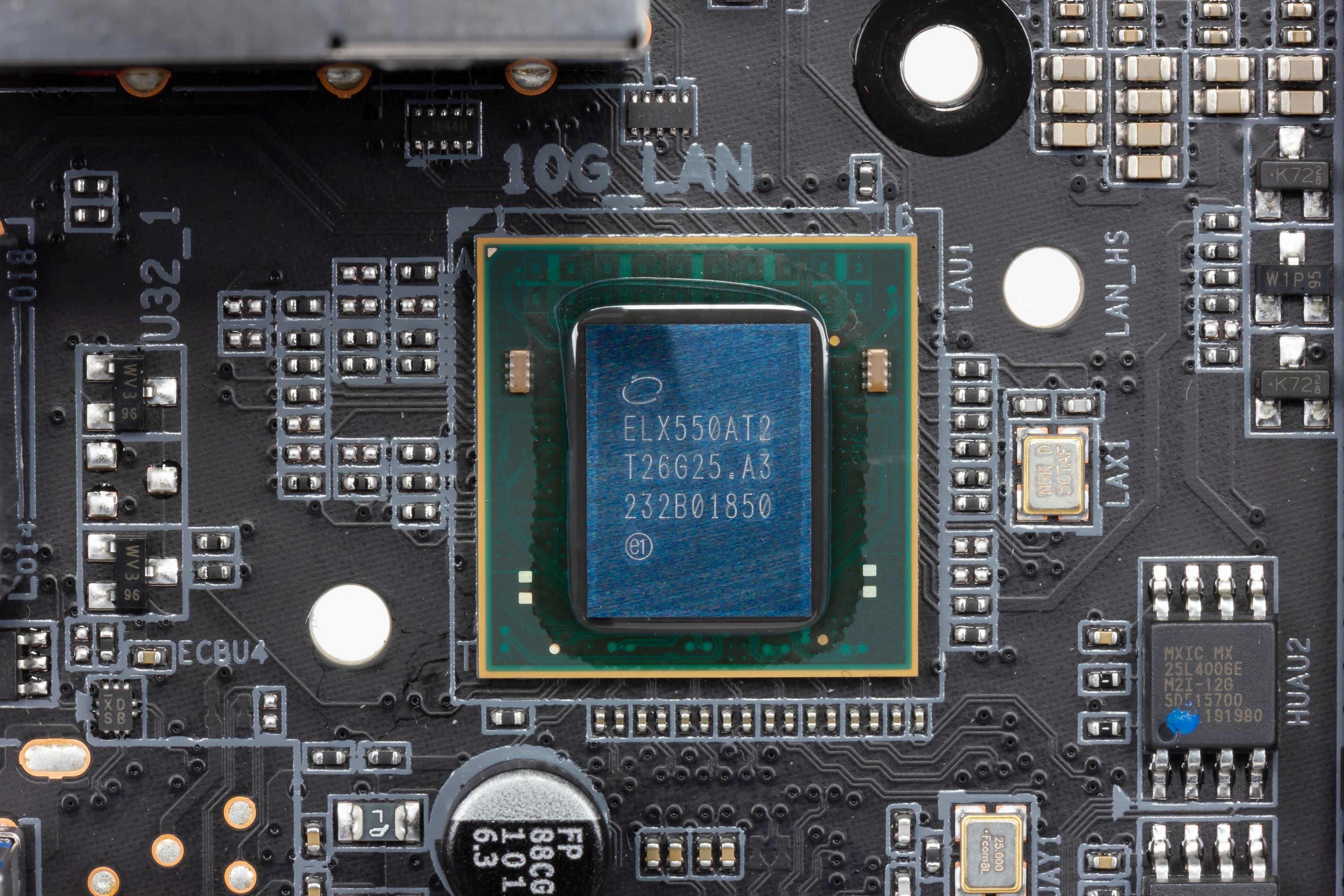 Материнская плата оснащена средствами связи очень богато. Имеется двойной самый современный Ethernet-контроллер: Intel X550AT, способный работать по стандарту 10 Гбит/с, он создает два соответствующих Ethernet-порта.
