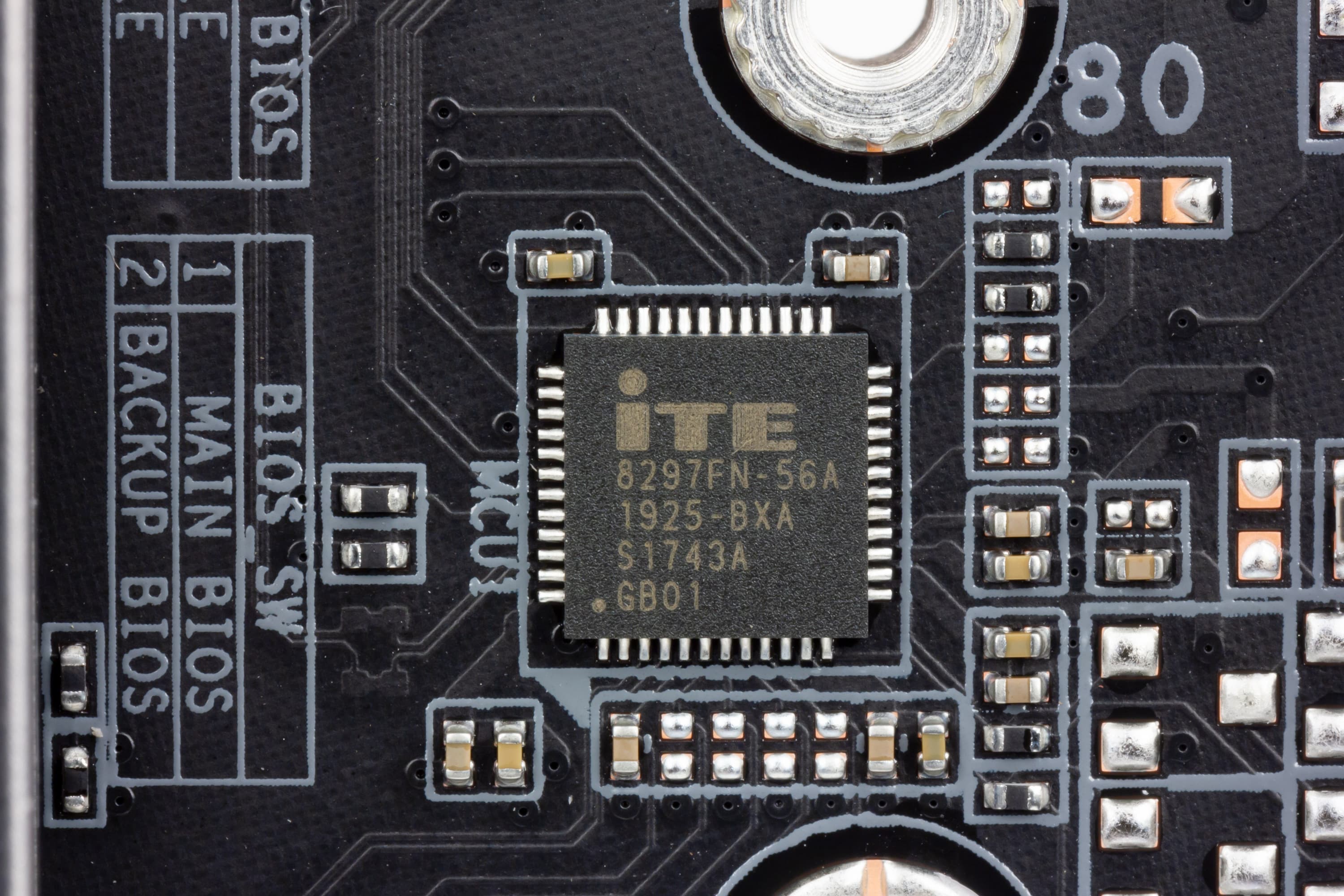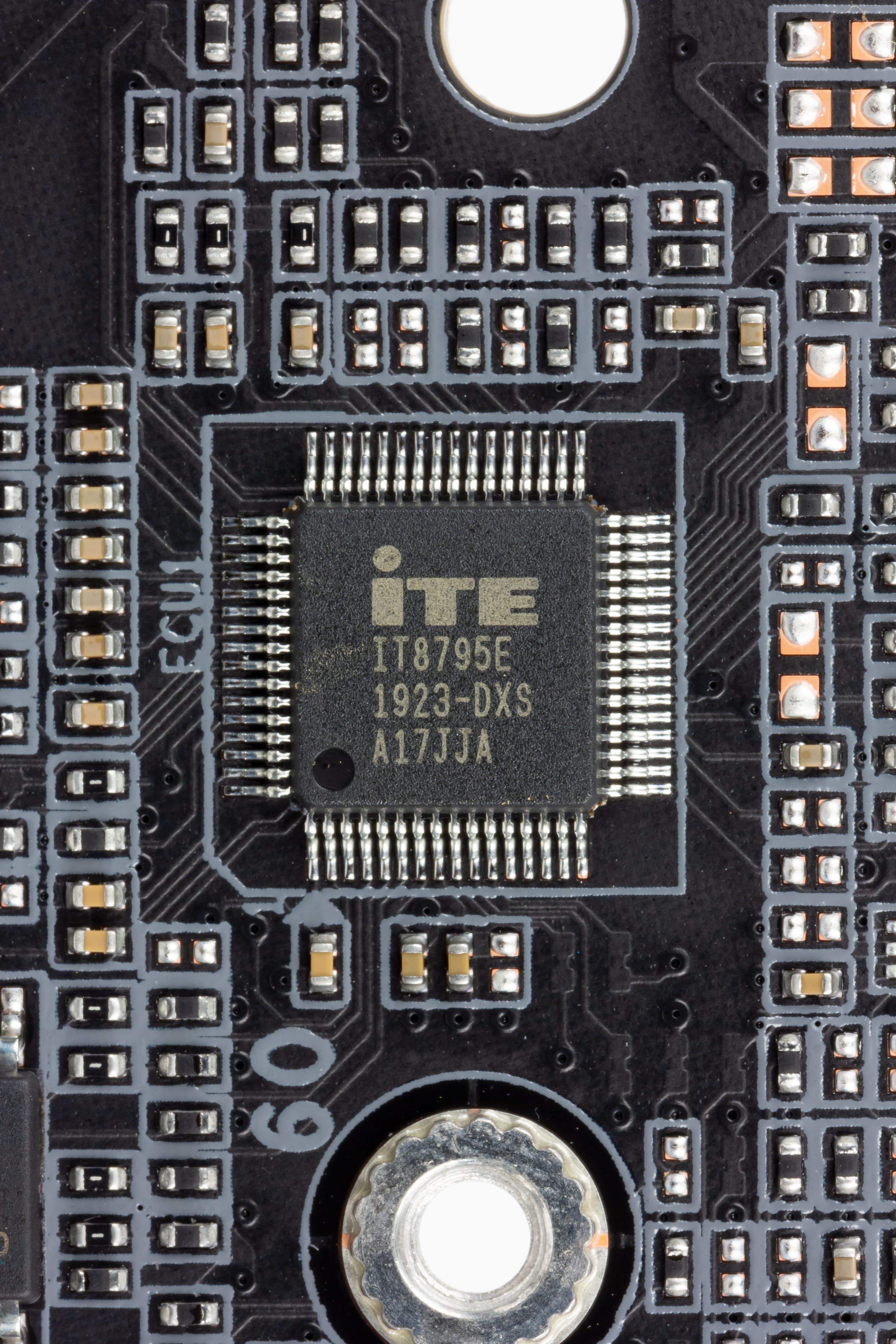 Работа Multi I/O обеспечивается ITE IT8688E, а контроллер IT8795E занимается мониторингом. В итоге мы имеем возможность слежения за всеми подключенными вентиляторами и помпами, а также тонкую регулировку их работы.