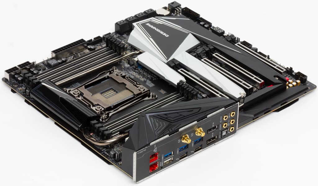 Выше мы изучили потенциальные возможности тандема X299+Core X, а теперь посмотрим, что из этого и как реализовано в данной материнской плате.