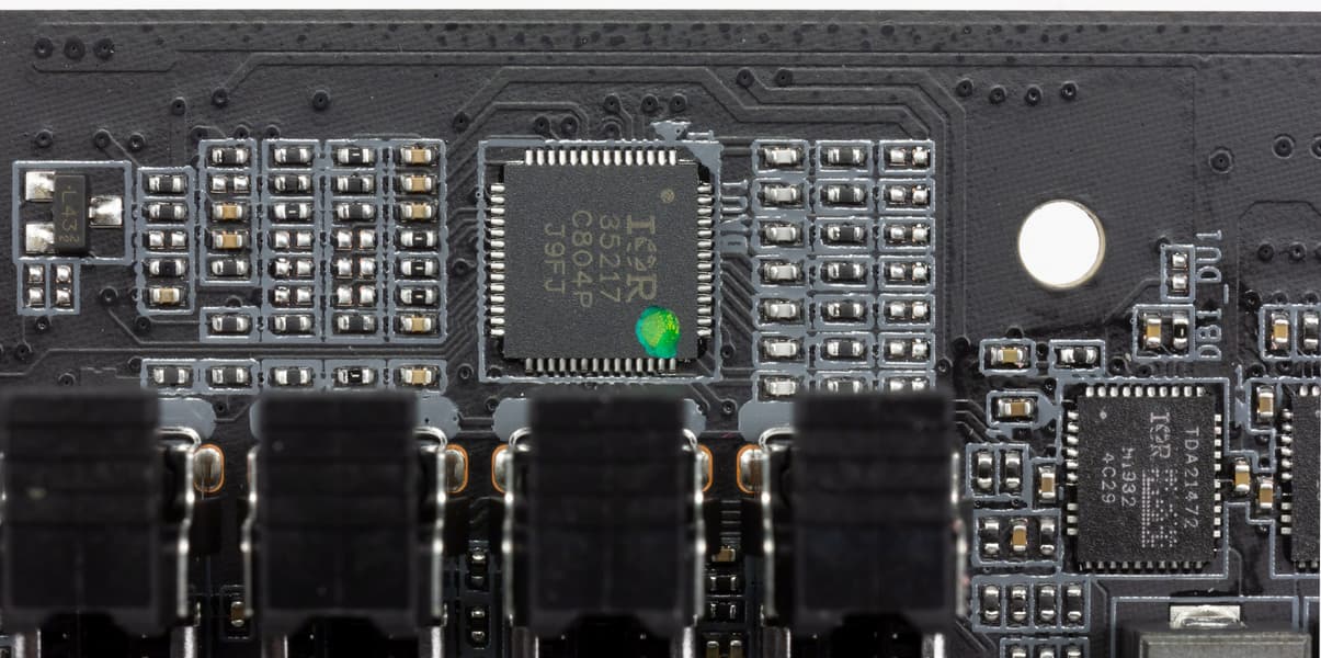 ШИМ-контроллером на все 6 фаз тут служит IR35204 того же производителя.
