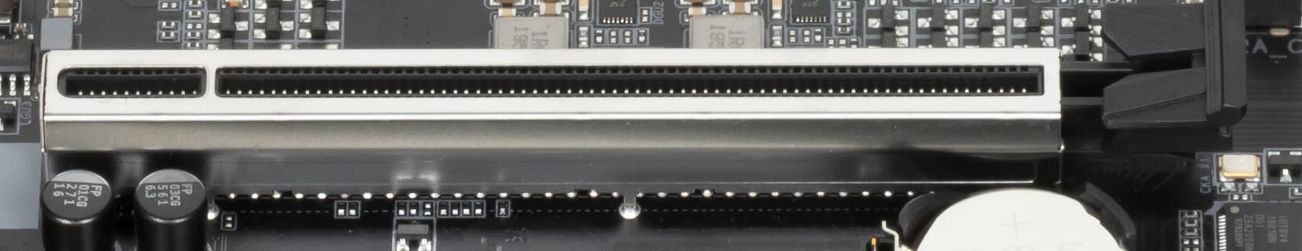 Все три слота PCIe x16 имеют металлическое армирование из нержавеющей стали, которое увеличивает их надежность (что может быть важным в случае довольно частой смены видеокарт, но что более важно: такой слот легче выдержит нагрузку на изгиб в случае установки очень тяжелой видеокарты топового уровня. Кроме того, такая защита предохраняет слоты от электромагнитных помех.