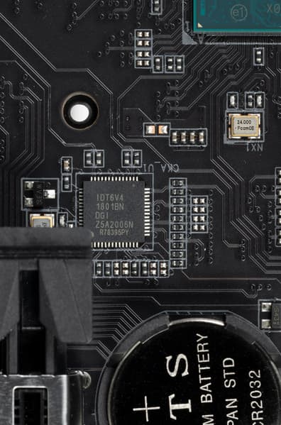 Для поддержания стабильных частот на шине PCIe (и для нужд оверклокеров) имеется внешний тактовый генератор от Renesas (ex IDT).