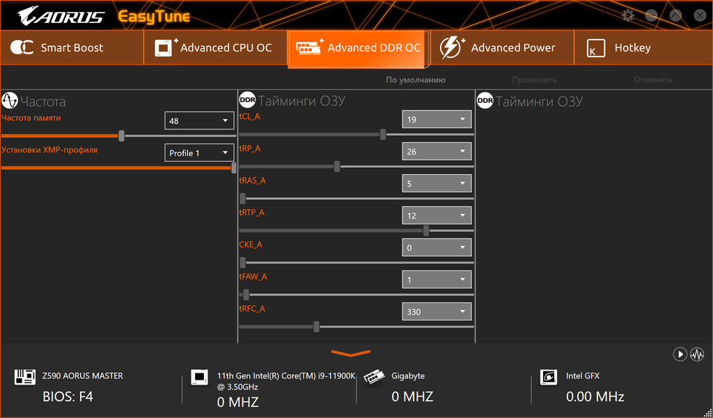 Специалисты Gigabyte нам вещают, что данная плата поддерживает работу модулей памяти на частотах до 5400 МГц через профили XMP. А также, что многие модули памяти с гарантированной поддержкой 4400 МГц на этой плате смогут взять планку в 5000 МГц. В том числе и за счет особой разводки на печатной плате.