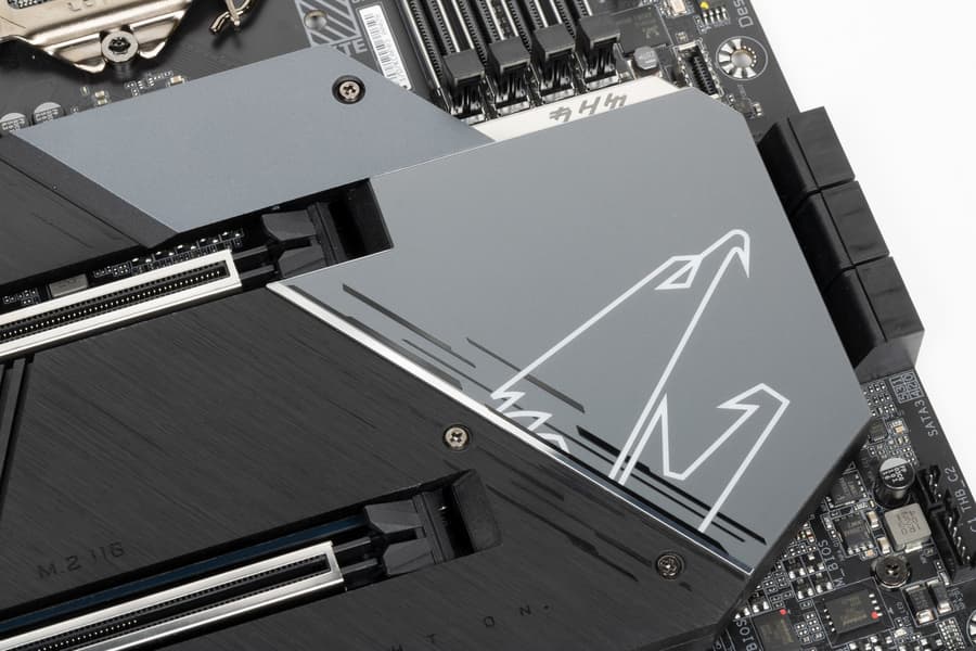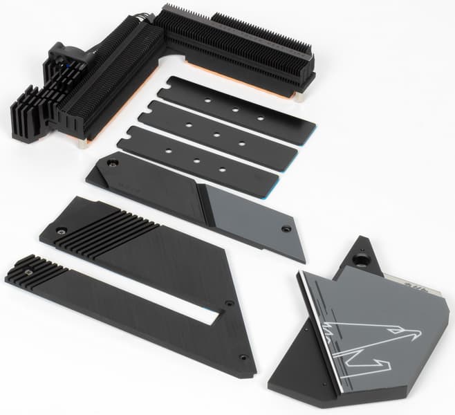 Все M.2 слоты имеют радиаторы. Верхний M.2 обладает отдельным радиатором, когда как остальные два слота M.2 покрывает единый общий радиатор, прикручивающийся к чипсетному.