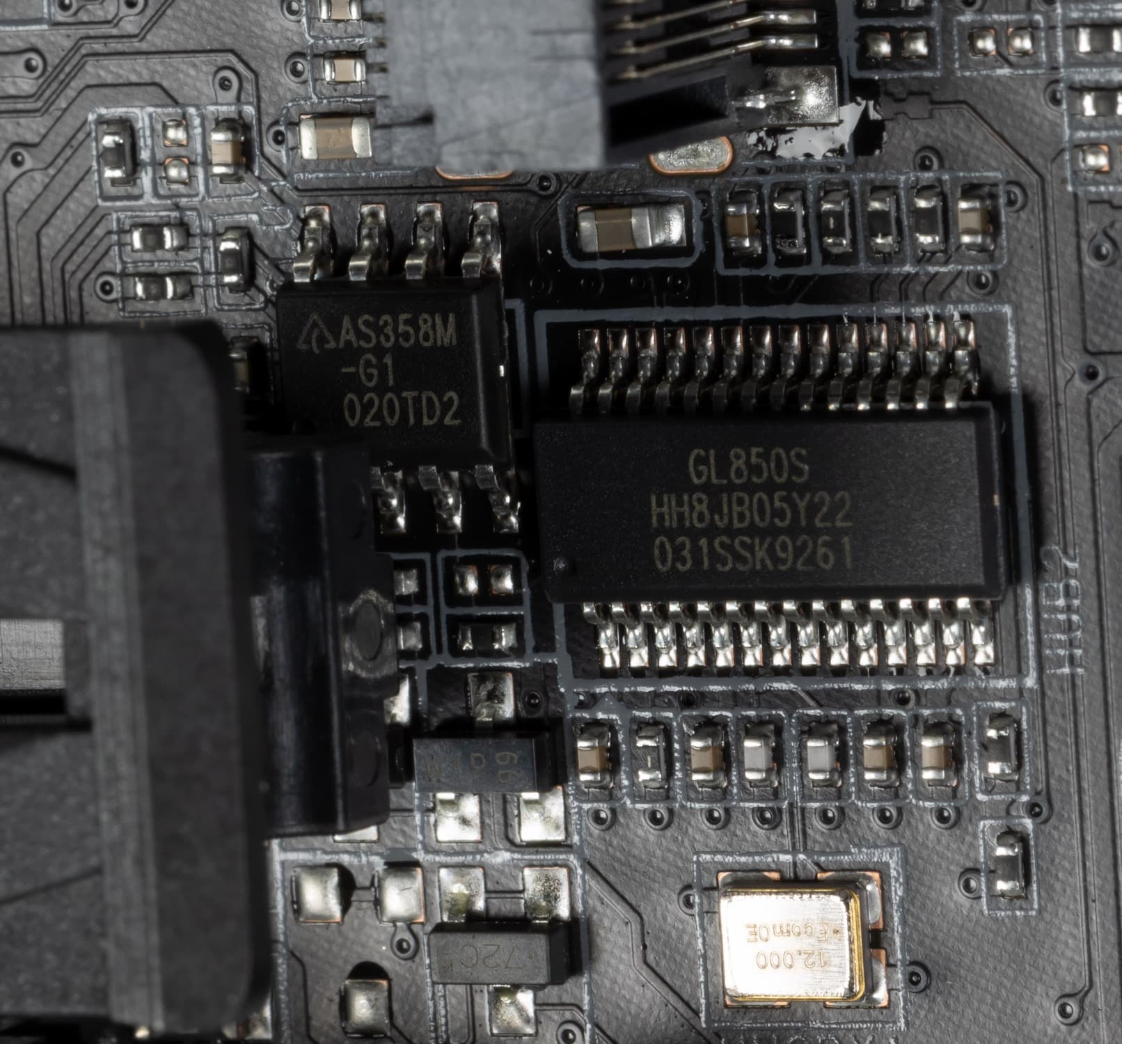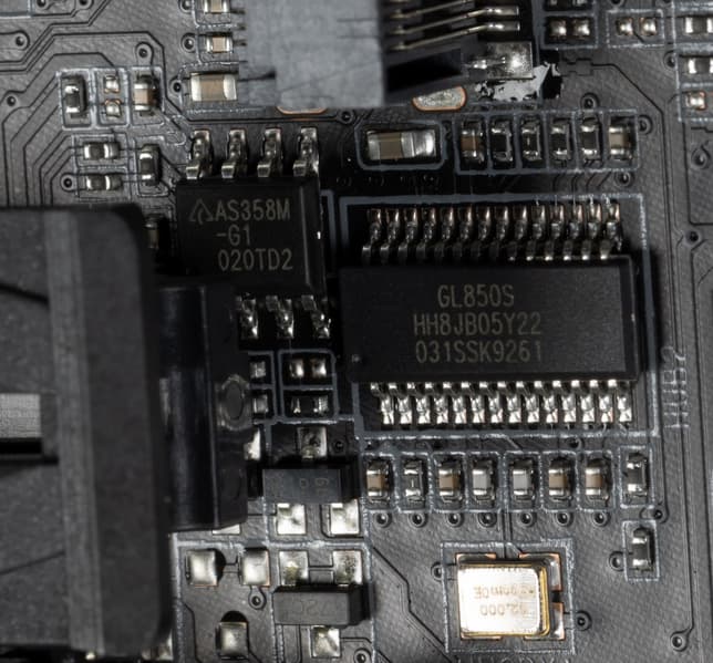 - 4 порта USB 2.0/1.1: все реализованы через контроллер Genesys Logic GL850S (на него потрачена 1 линия USB 2.0) и представлены двумя внутренними разъемами (каждый на 2 порта).