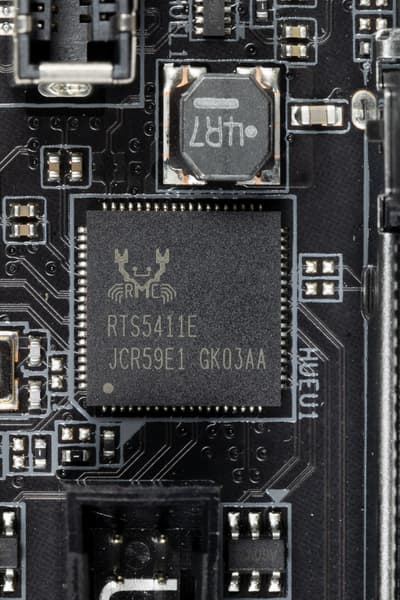 - 8 портов USB 3.2 Gen1: 4 реализованы через контроллер Realtek RTS5411E (на него потрачена 1 линия PCie 3.0) и представлены 4-мя портами Type-A на задней панели (синие), еще 4 реализованы через второй Realtek RTS5411E (на него потрачена 1 линия PCIe 3.0) и представлены двумя внутренними разъемами на материнской плате (каждый на 2 порта);
