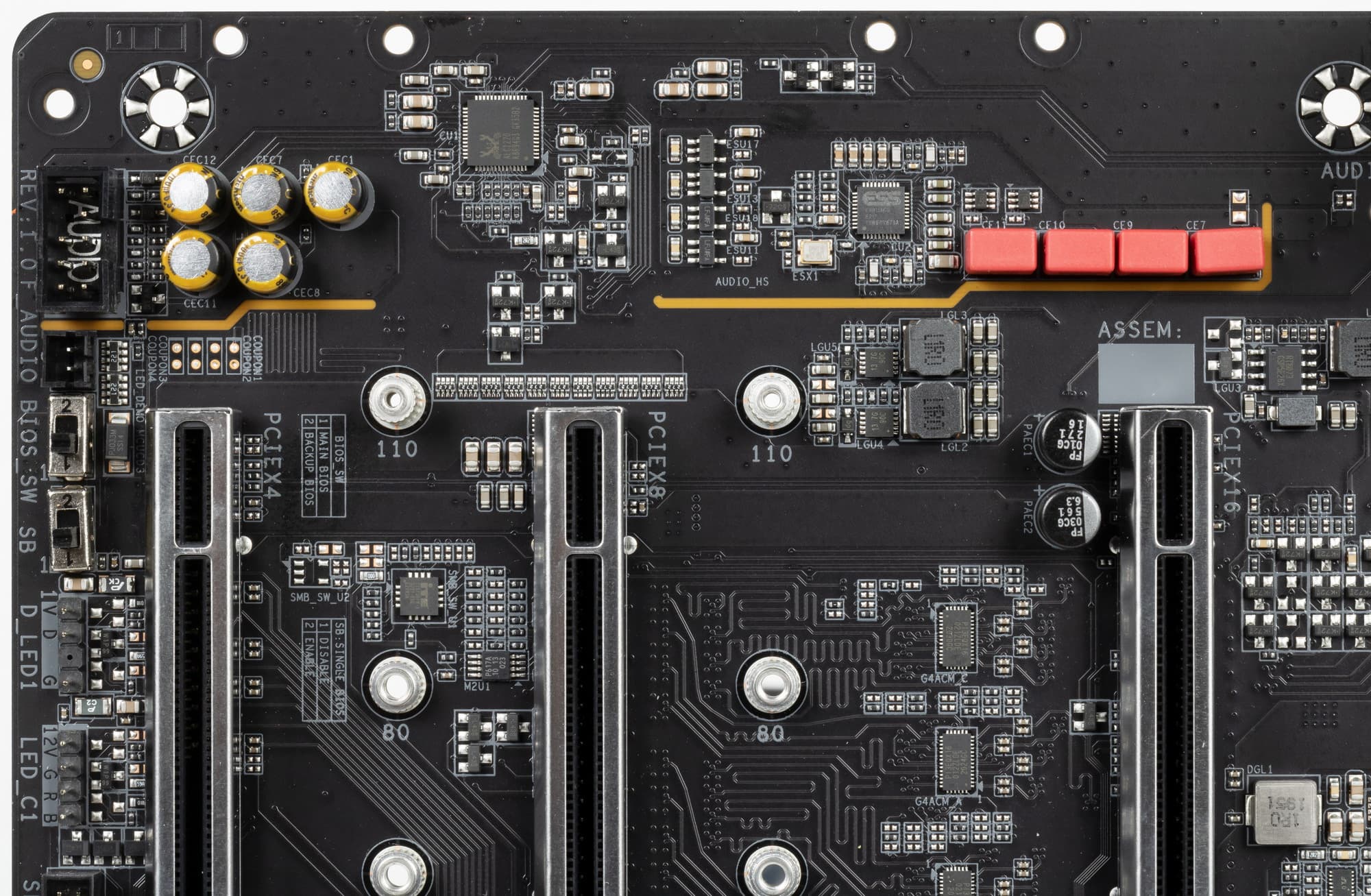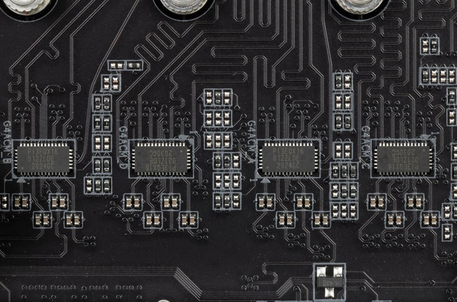 Как видим, перераспределение линий PCIe между слотами у этой материнки имеется, поэтому востребованы мультиплексоры PI3EQX16 от Diodes Inc. (ex Pericom).