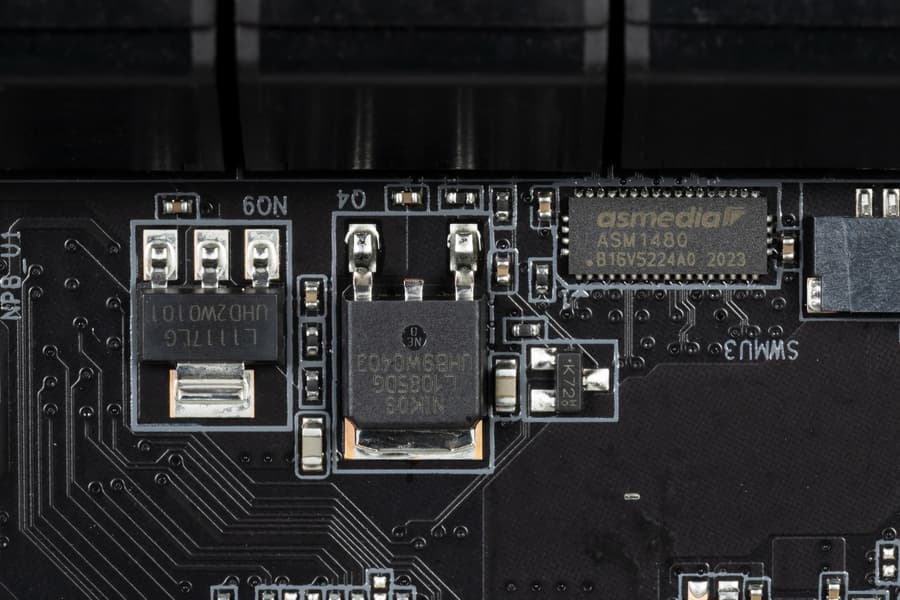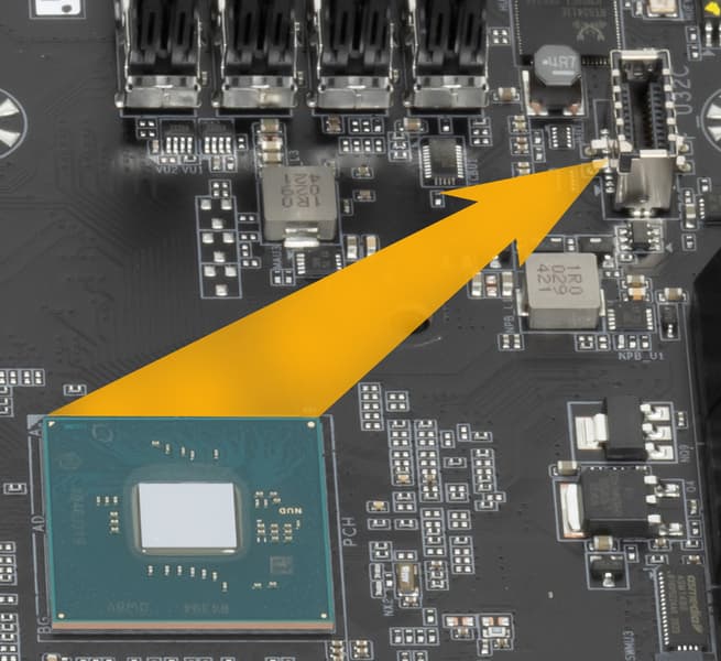 Для обеспечения переключений между М.2 и SATA портами имеется мультиплексор ASM1480 от ASMedia.
