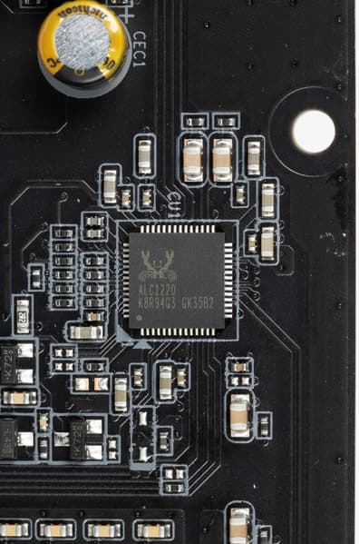 Мы знаем, что практически во всех современных материнских платах звуком заведует аудиокодек Realtek ALC1220. Он обеспечивает вывод звука по схемам до 7.1. В данном случае используется версия Realtek ALC1220-VB.