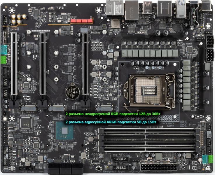 Всего у платы 6 разъемов Serial ATA 6 Гбит/с + 3 слота для накопителей в форм-факторе M.2. Все порты SATA реализованы через чипсет Z590 и поддерживают создание RAID.