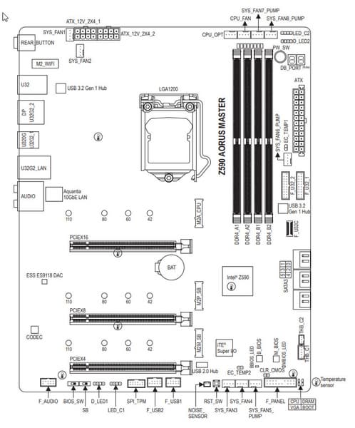 | Разъемы для накопителей | 6 × SATA 6 Гбит/с (Z590) 1 × M.2 (CPU, PCIe 4.0 x4 для устройств формата 2242/2260/2280/22110)(только для процессоров 11ххх!) 2 × M.2 (Z590, PCIe 3.0 x4/SATA для устройств формата 2242/2260/2280/22110) |