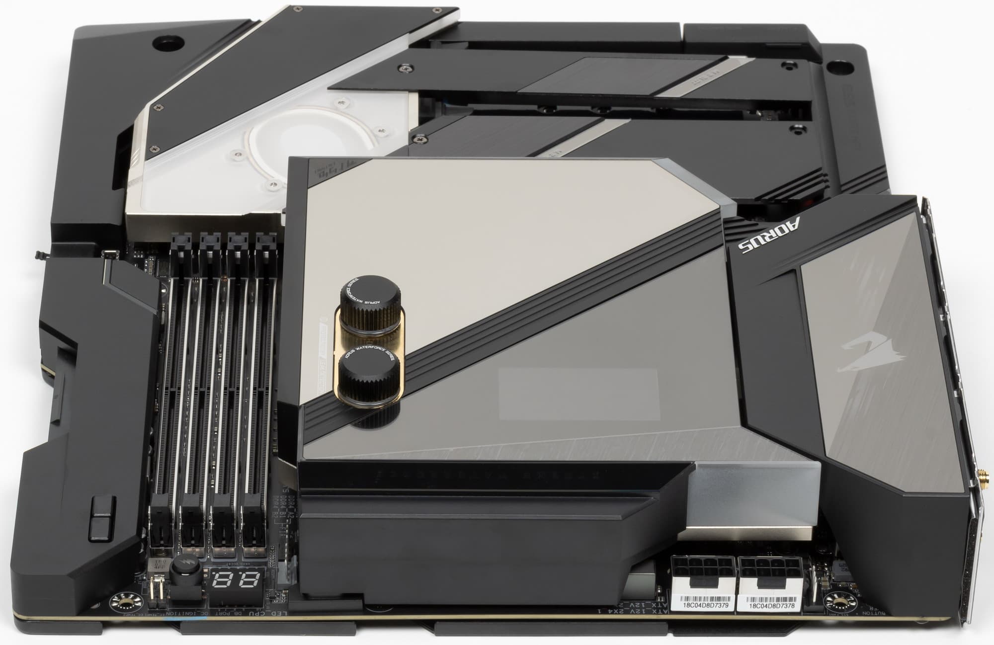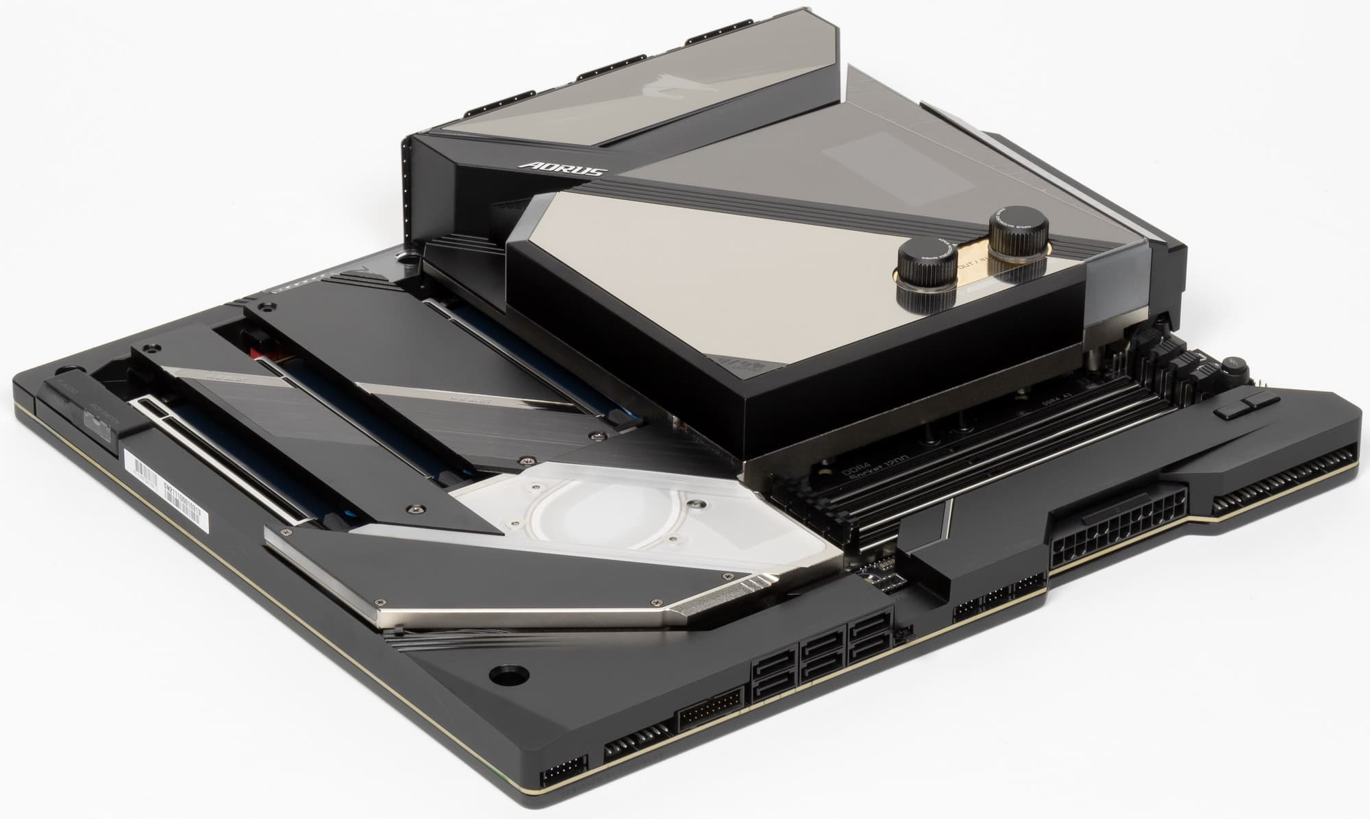 Одно только то, что плата относится к суббренду Aorus, уже говорит о том, что продукт — для энтузиастов. Серия Xtreme нам вещает — что для экстремальных геймеров. А наличие водоблока — для заядлых оверклокеров. Впрочем, сейчас СО с жидкостным способом охлаждения ставят не только оверклокеры, а и просто энтузиасты-любители, желающие получить либо малошумный ПК, либо эстетически-красивый системный блок, которым можно любоваться и хвастаться.