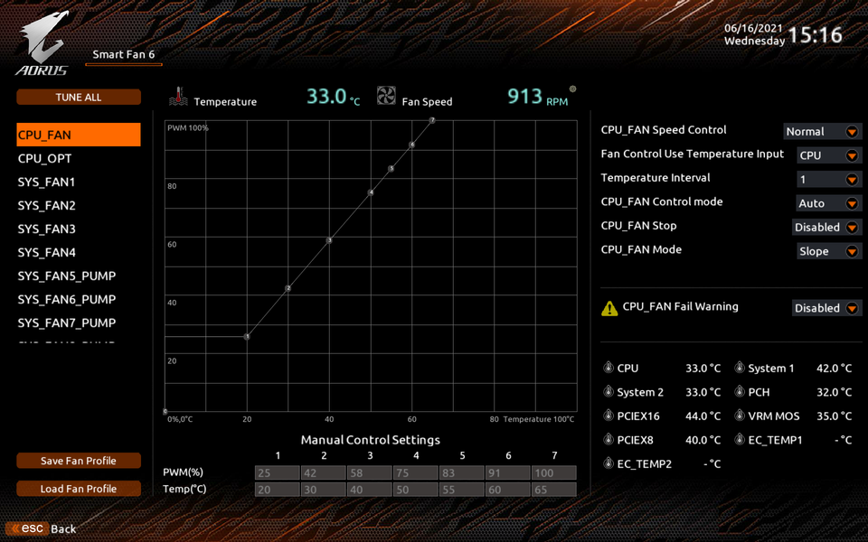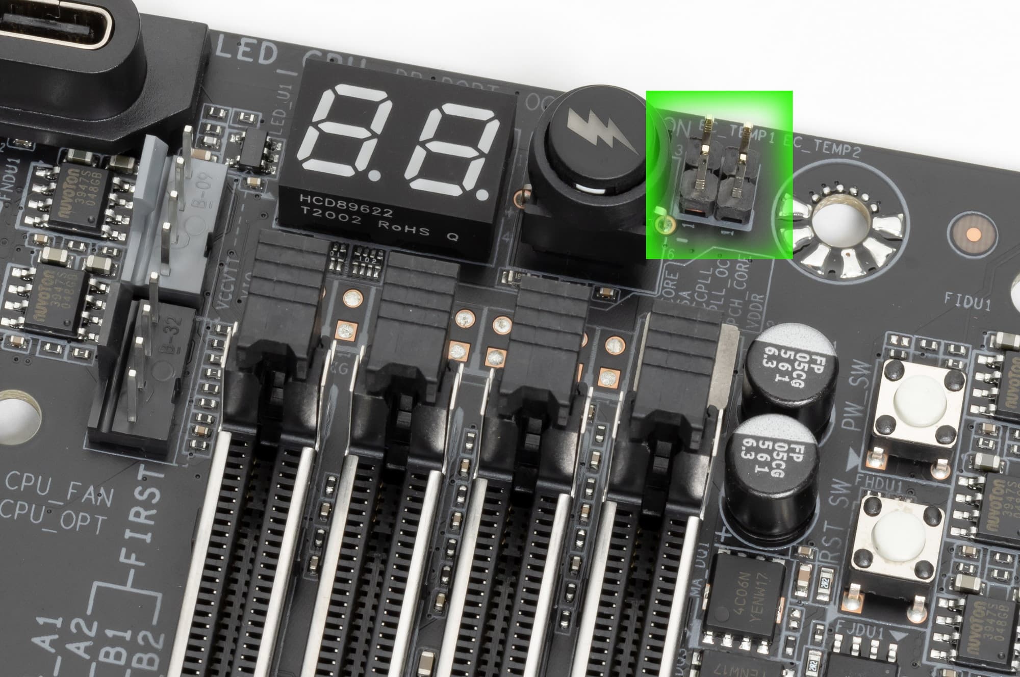 Через ПО или BIOS контролируется все гнезда для подключения воздушных вентиляторов или помп: они могут управляться как через ШИМ, так и банальным изменением напряжения/тока. Для двух гнезд под помпы по умолчанию установлена максимальная скорость.