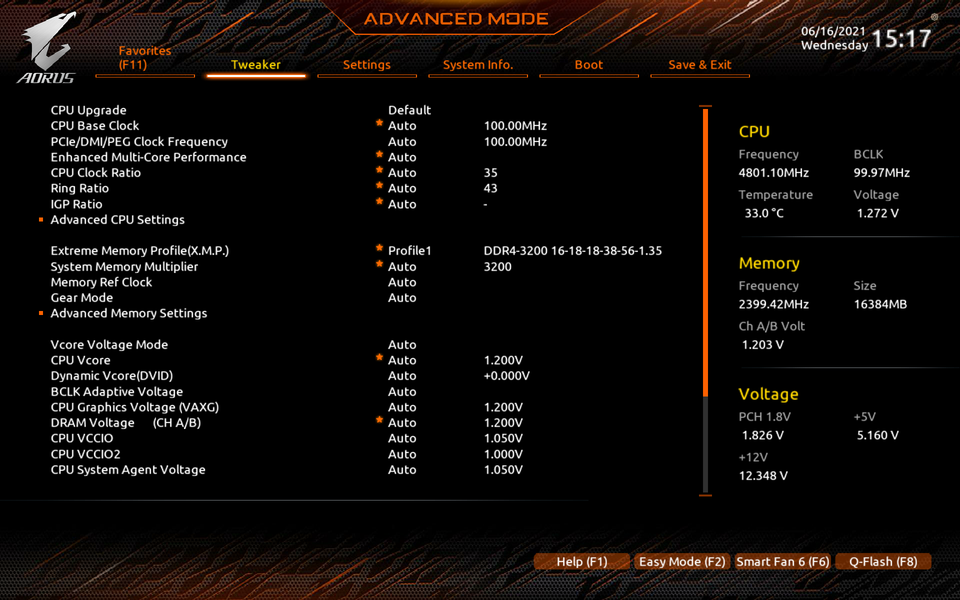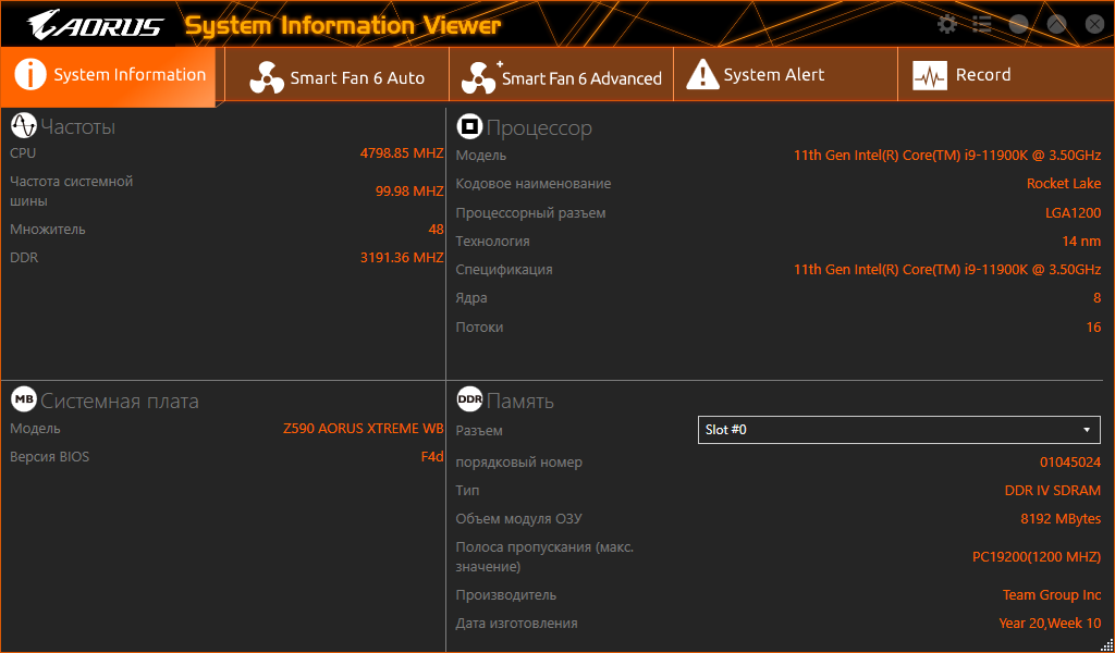 Специалисты Gigabyte нам вещают, что данная плата поддерживает работу модулей памяти на частотах до 5400 МГц через профили XMP. А также, что многие модули памяти с гарантированной поддержкой 4400 МГц на этой плате смогут взять планку в 5000 МГц. В том числе и за счет особой разводки на печатной плате.