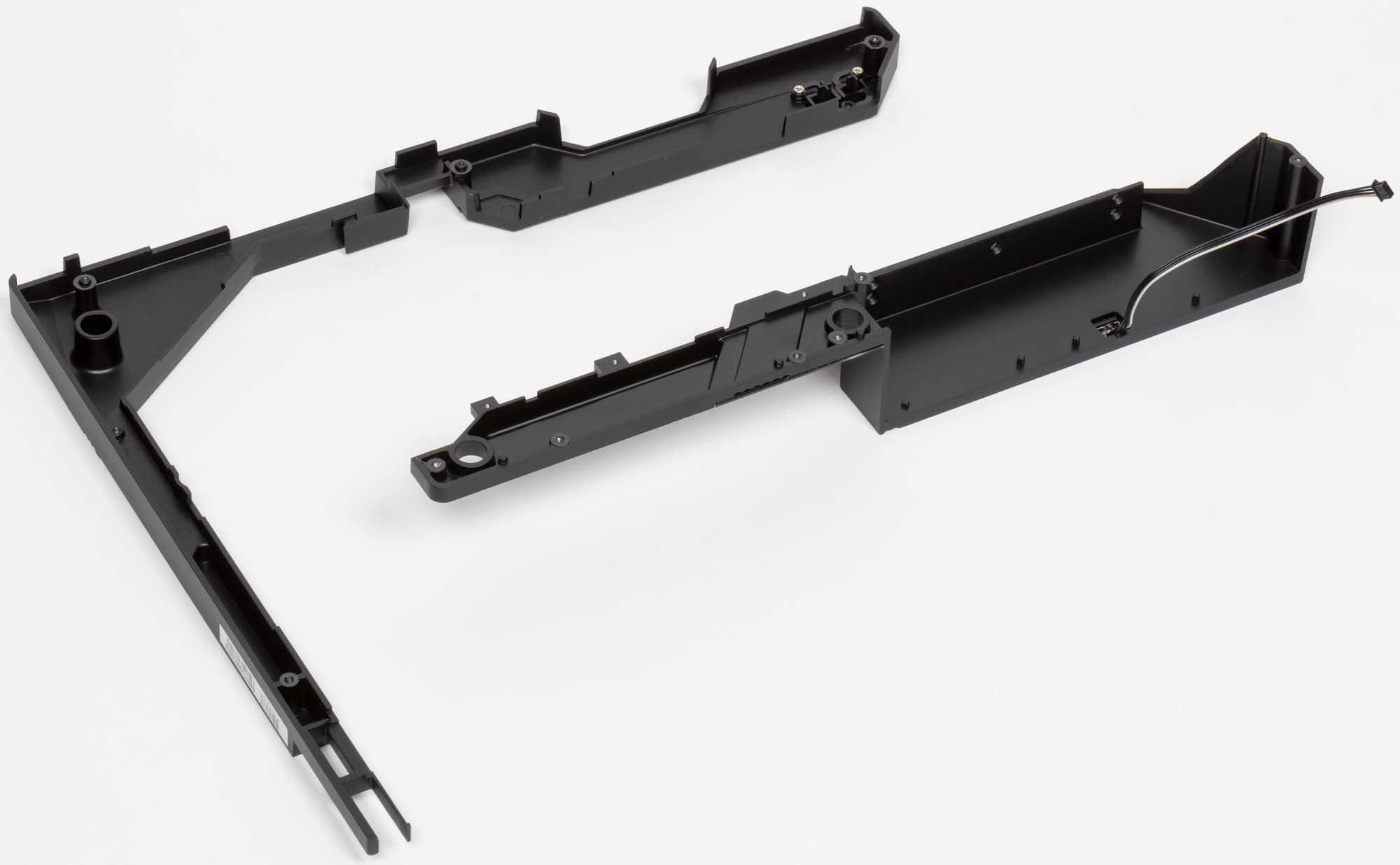 Над аудиоподсистемой и задним блоком портов установлен пластиковый кожух соответствующего дизайна, он оснащен подсветкой.