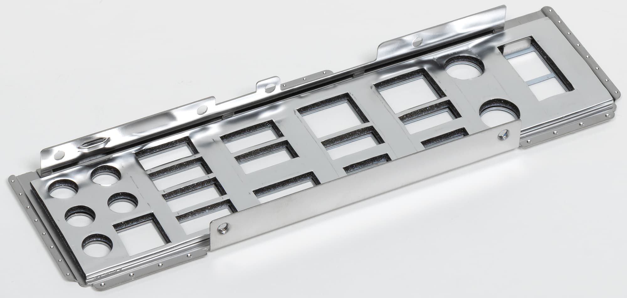 Заглушка, традиционно надеваемая на заднюю панель, в данном случае уже надета, и изнутри экранирована для снижения электромагнитных помех.