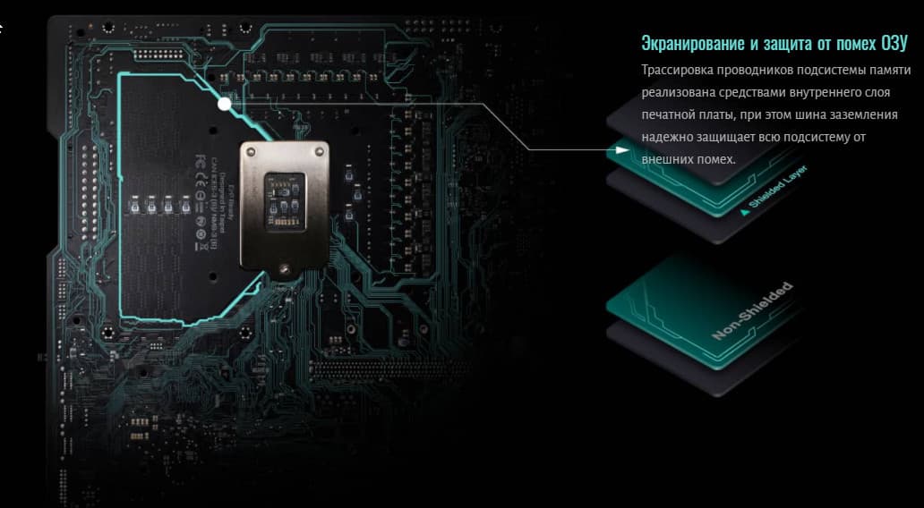Слоты DIMM имеют металлическую окантовку, которая препятствует деформации слотов и печатной платы при установке модулей памяти и защищает от электромагнитных помех, и которая обычно всегда является составной частью флагманского набора у материнских плат.