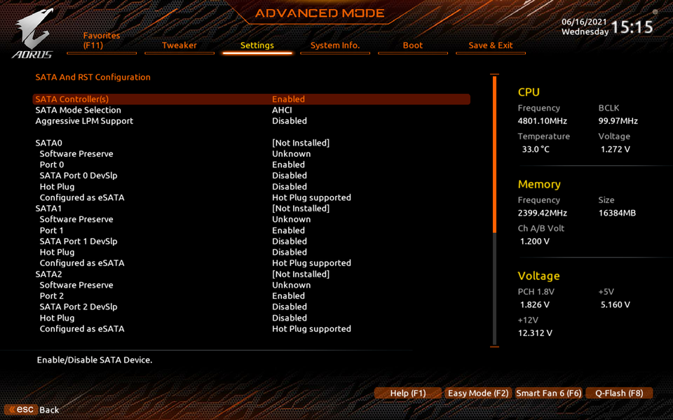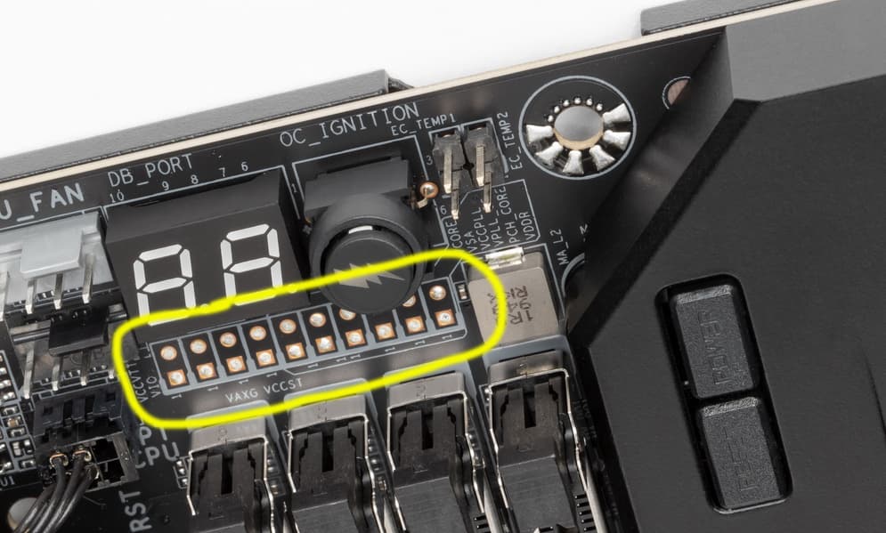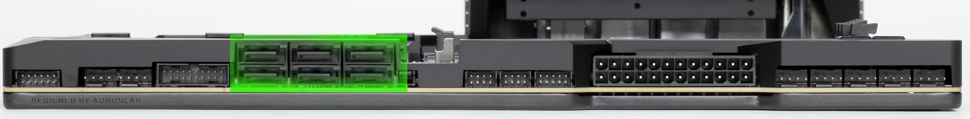 Поскольку количество HSIO линий у Z590 ограничено тридцатью, то приходится делить ресурсы, о чем я выше уже говорил, рассматривая PCIe слоты. Поэтому если в слот M.2 (M2A_SB) вставлен накопитель с интерфейсом SATA, то это автоматом отключит порт SATA_1 (ну и наоборот, если последний задействован, то слот M.2 (M2A_SB) будет работать только в режиме PCIe x4/x2).